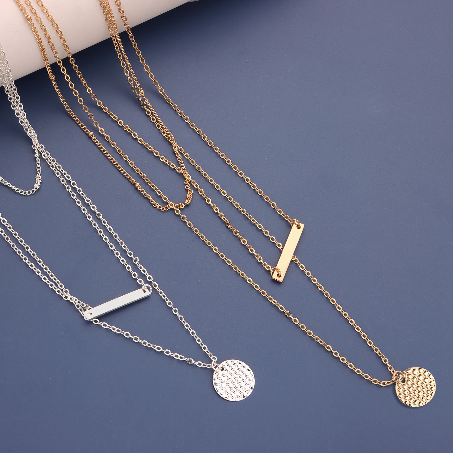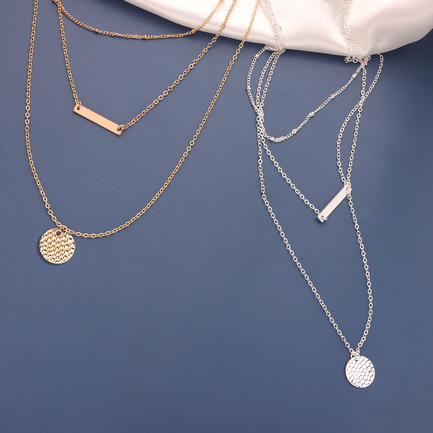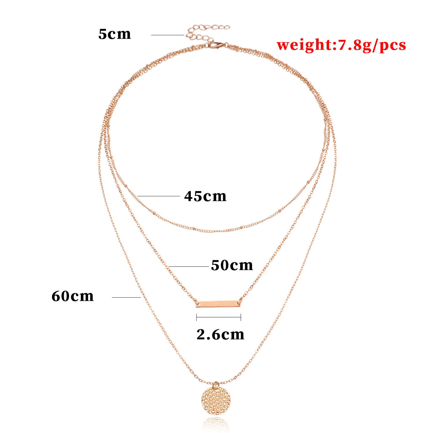 European and American Cross-border Jewelry Fashion Style Geometric Metal Sequin Multi-layer Short Necklace Chain