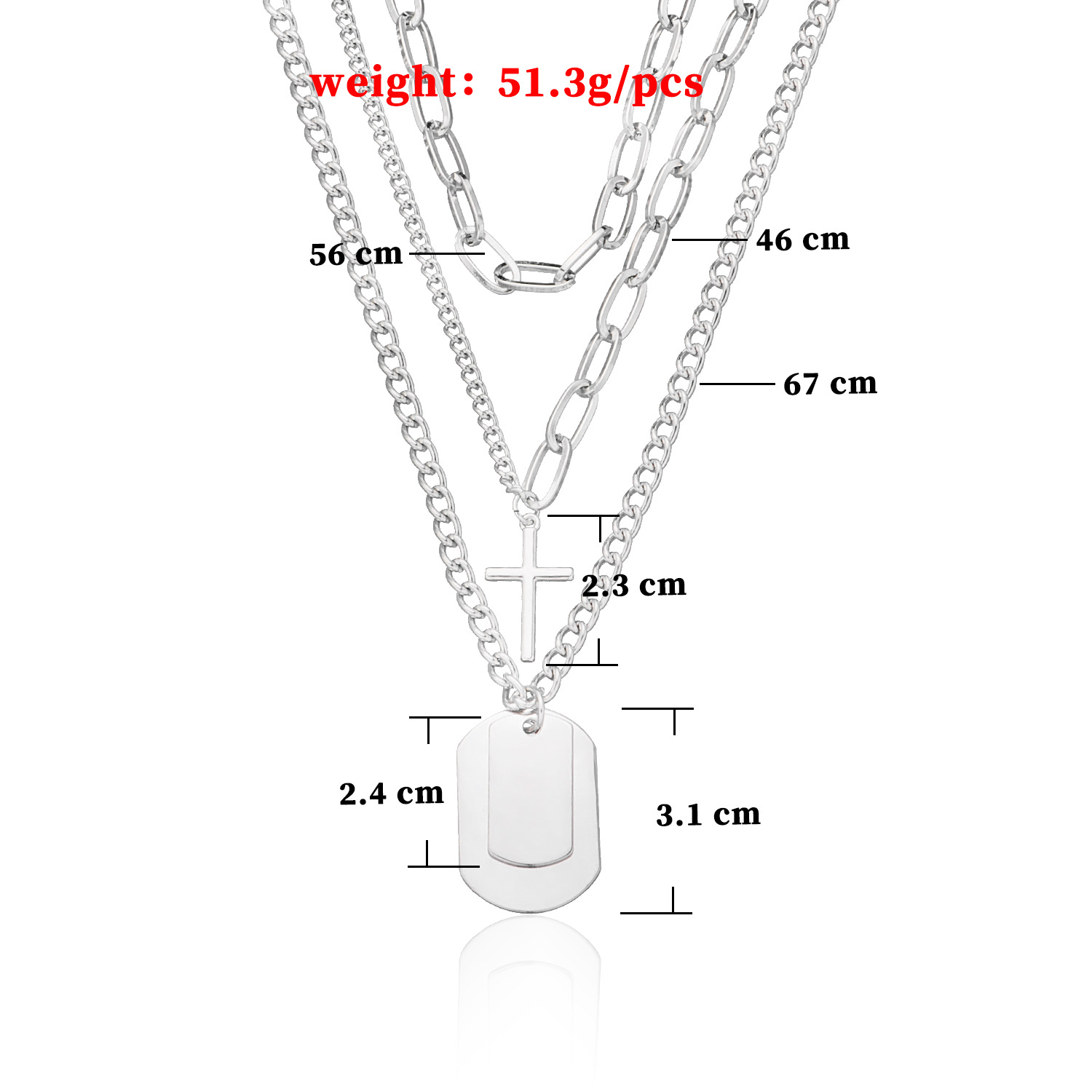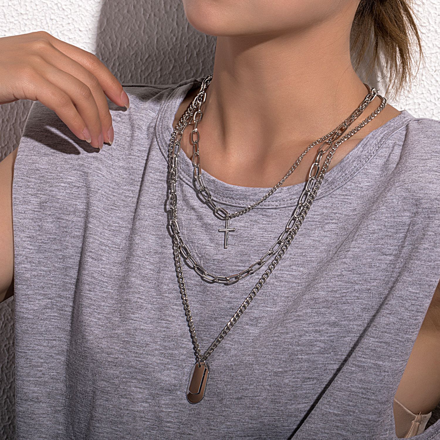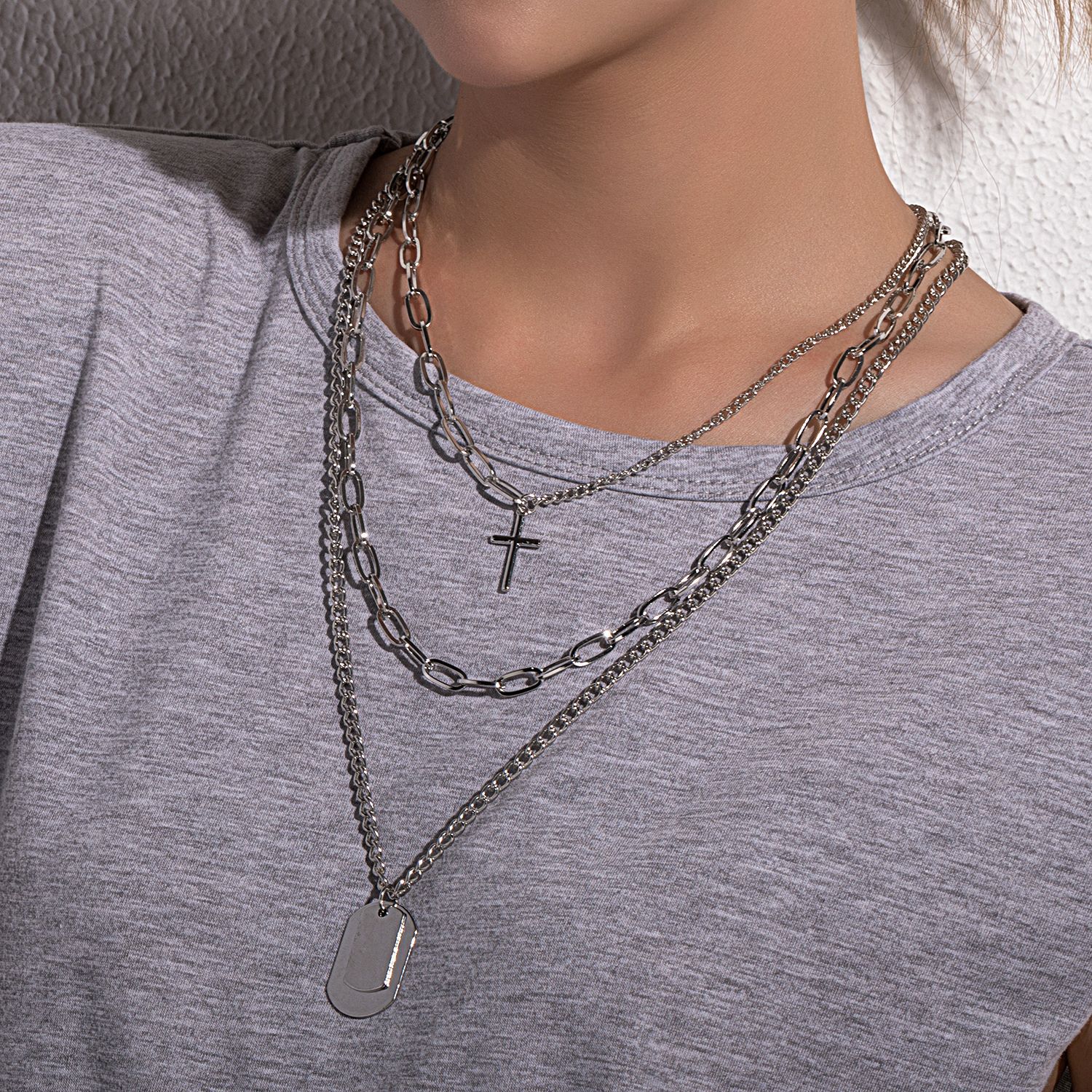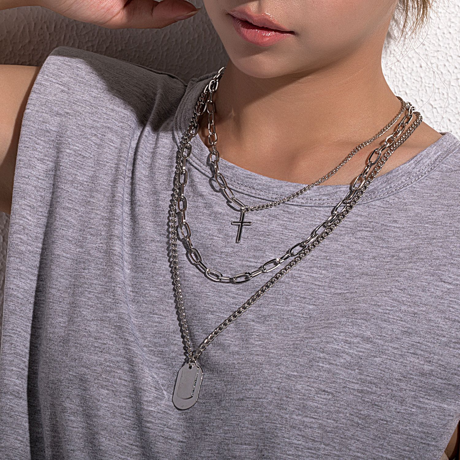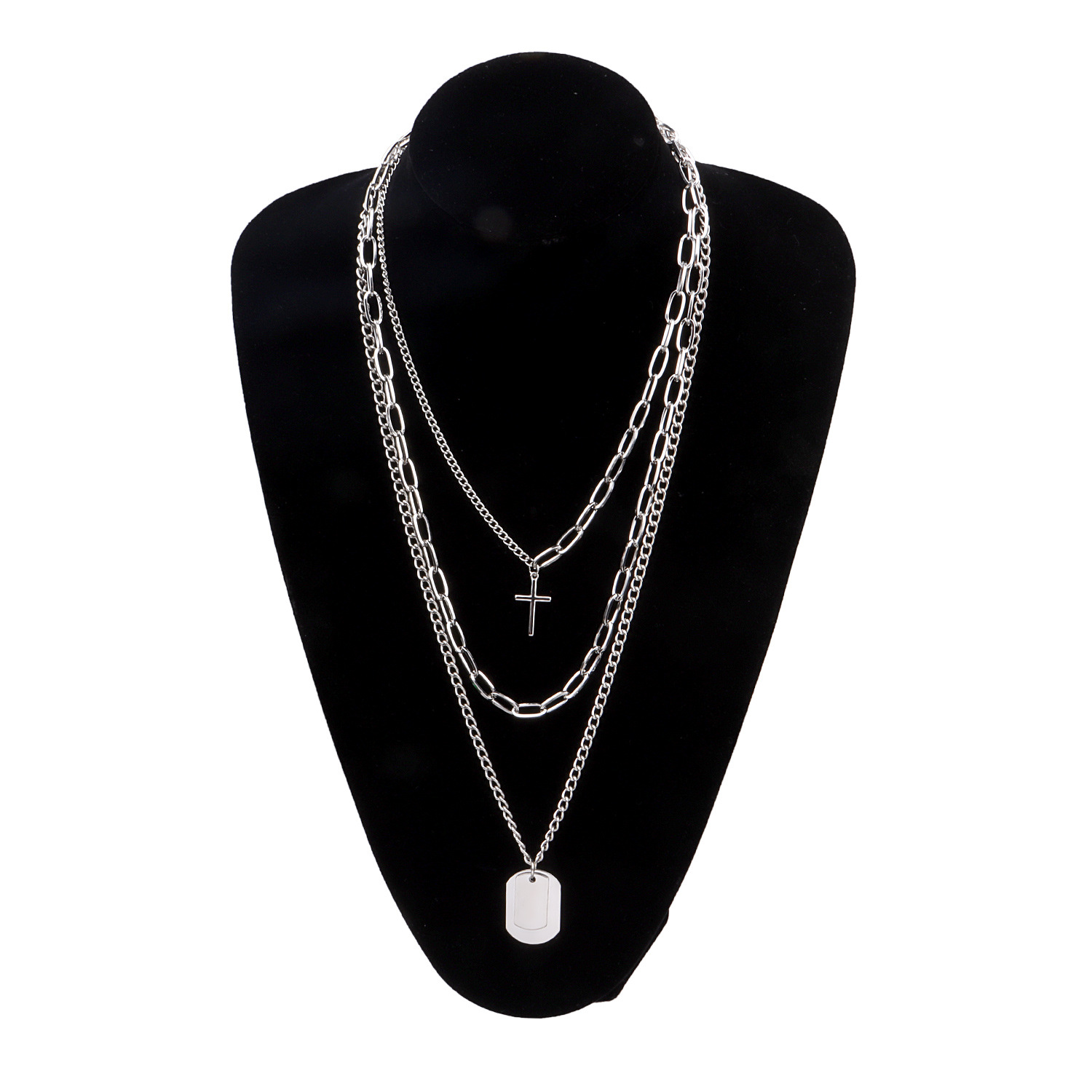 European and American Cross-border Jewelry Hip Hop Student Multi-layer Cross Necklace Female Geometric Square Pendant Necklace