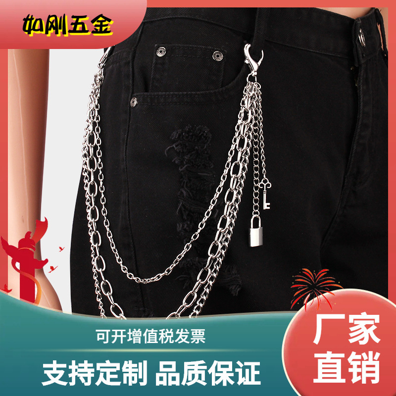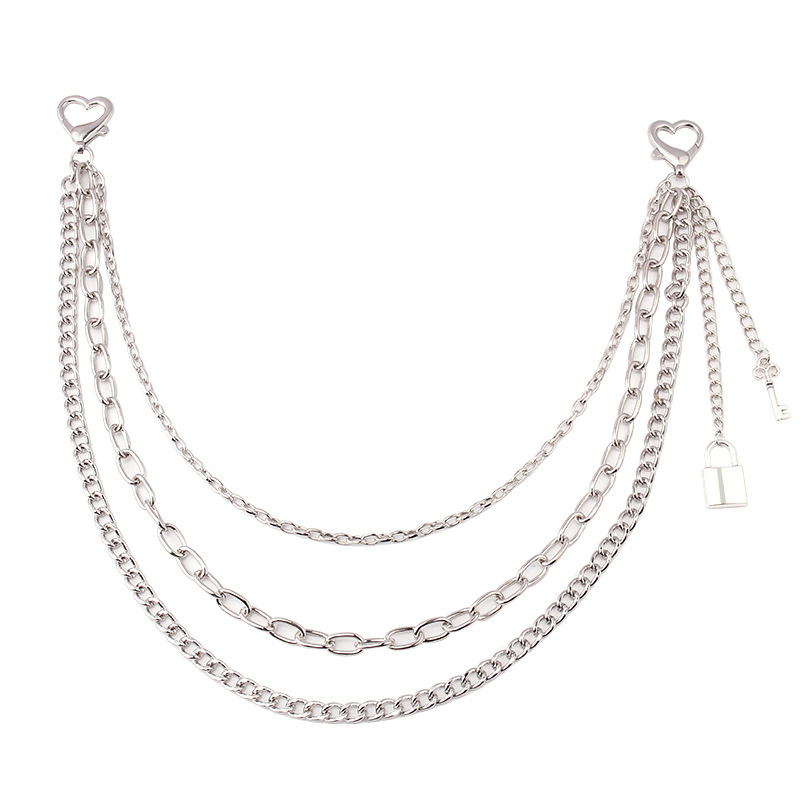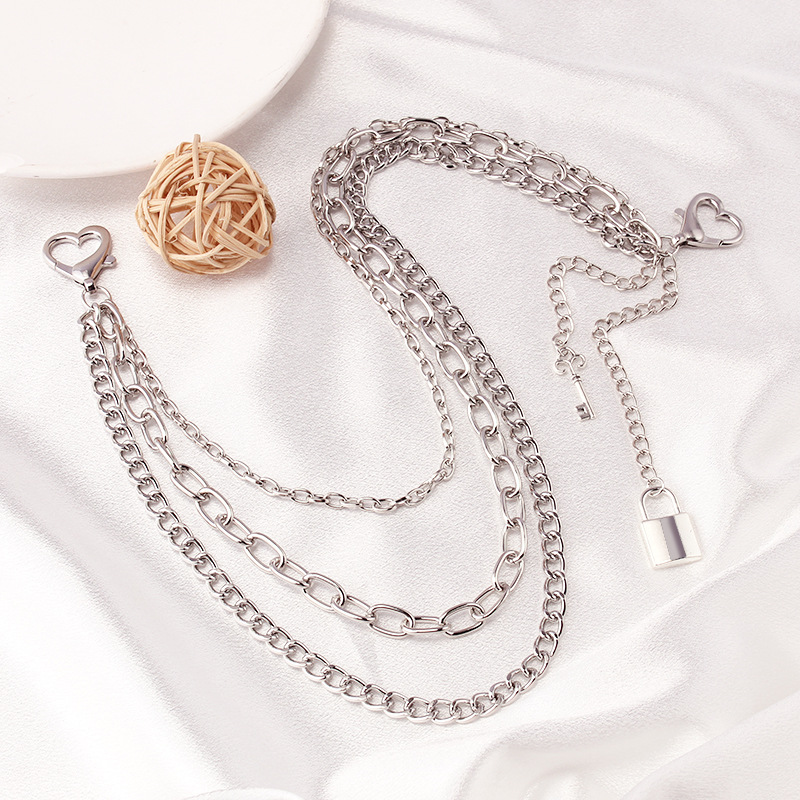 European and American Cross-border Jewelry Hollow Heart Lobster Clasp Multi-layer Waist Chain Pants Chain Punk Hip-hop Padlock Key Pendant