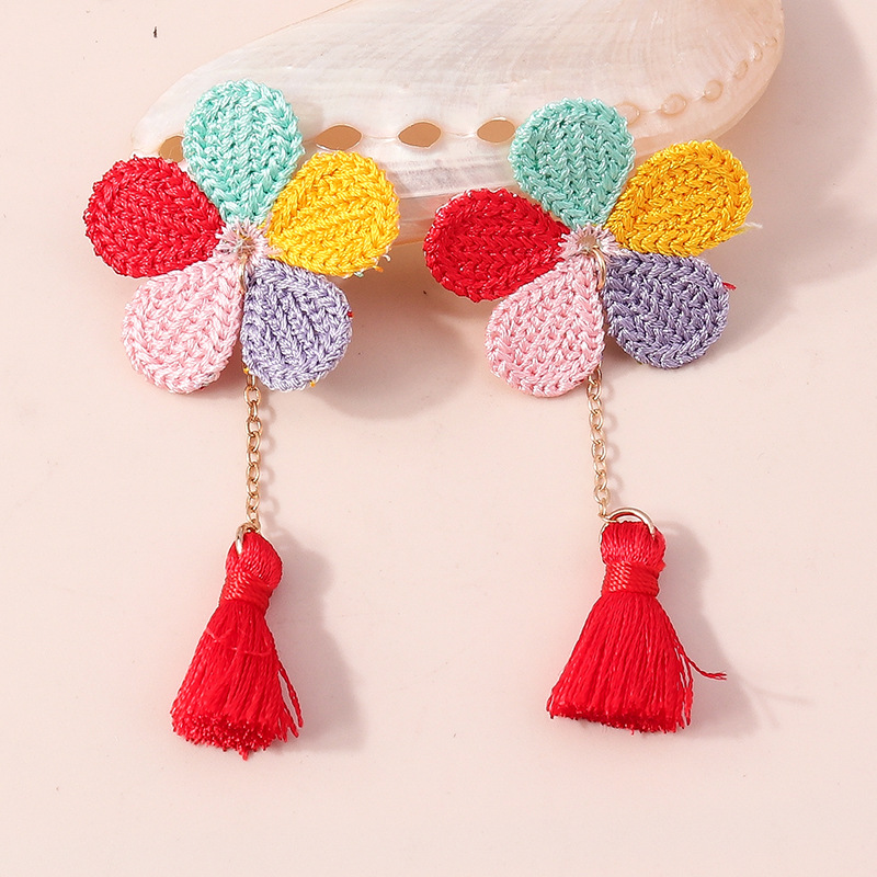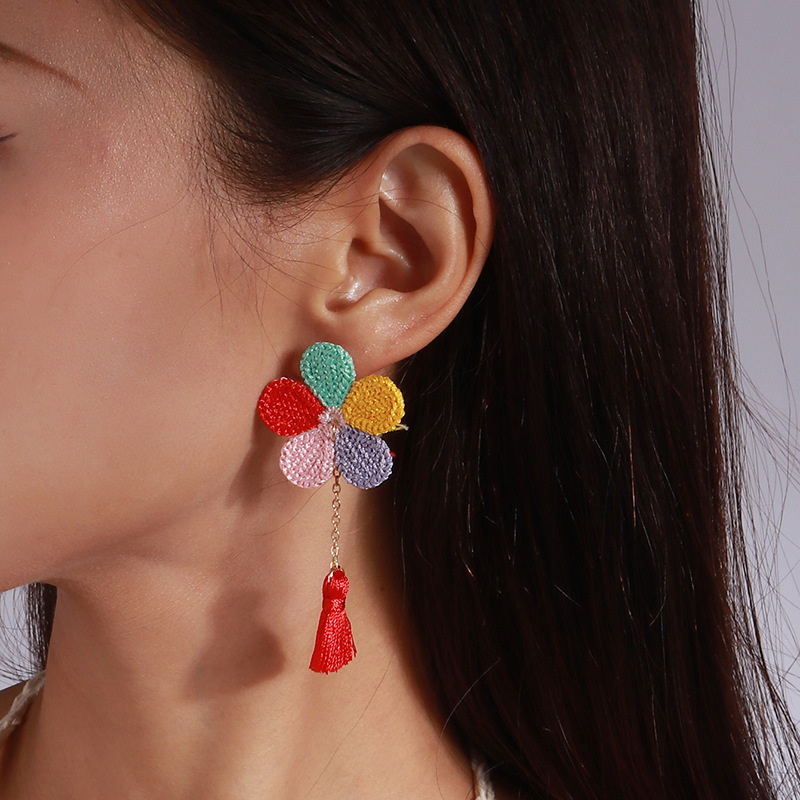 | nameOriginal | European and American cross-border jewelry ins fresh fabric cherry blossom earrings long tassel earrings flower earrings |