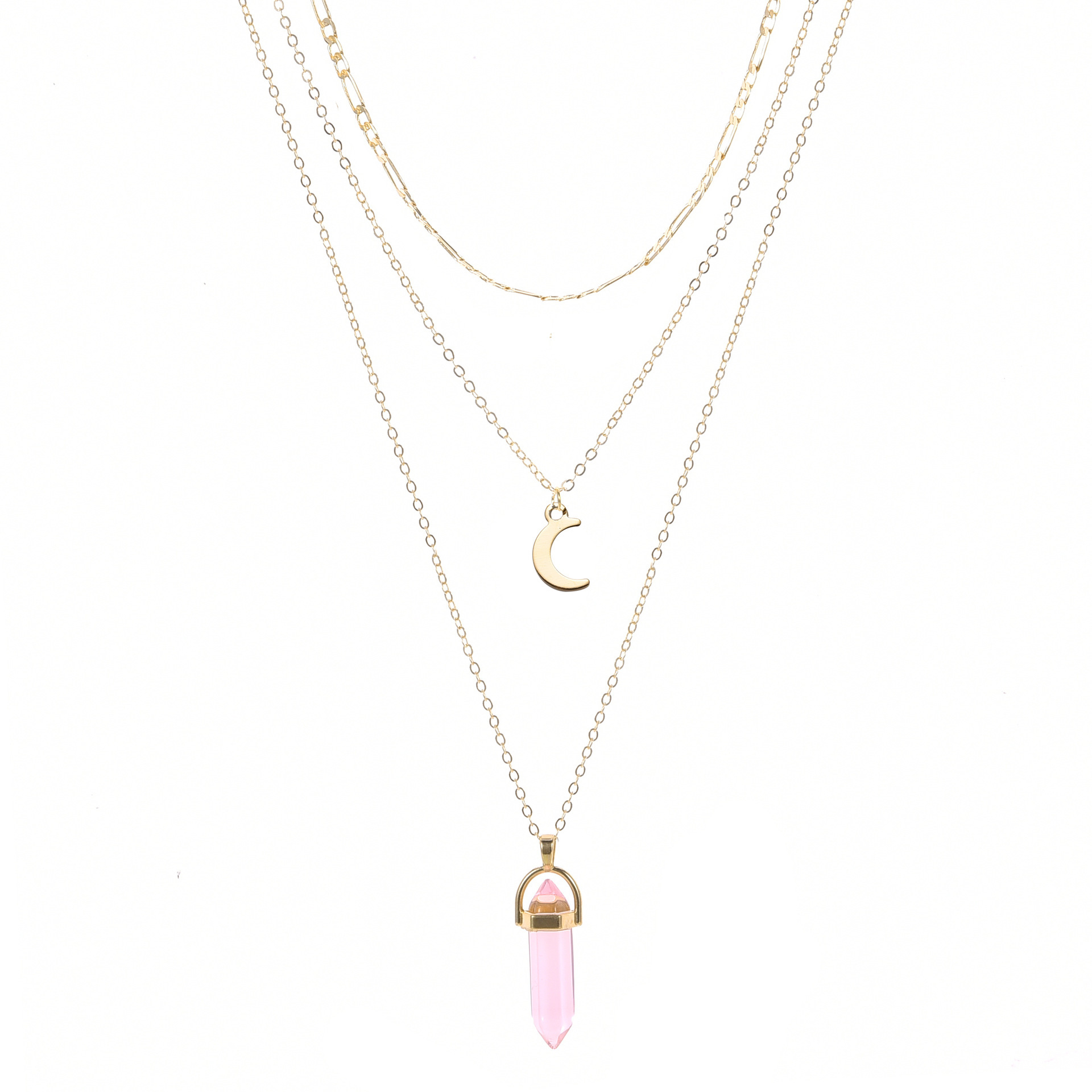 | nameOriginal | European and American Cross-border Jewelry Moon Crystal Hexagonal Column Stone Pendant Necklace Multi-layer Chain Necklace Women |