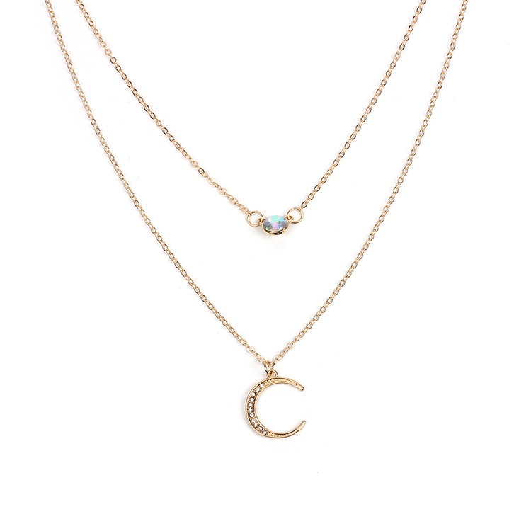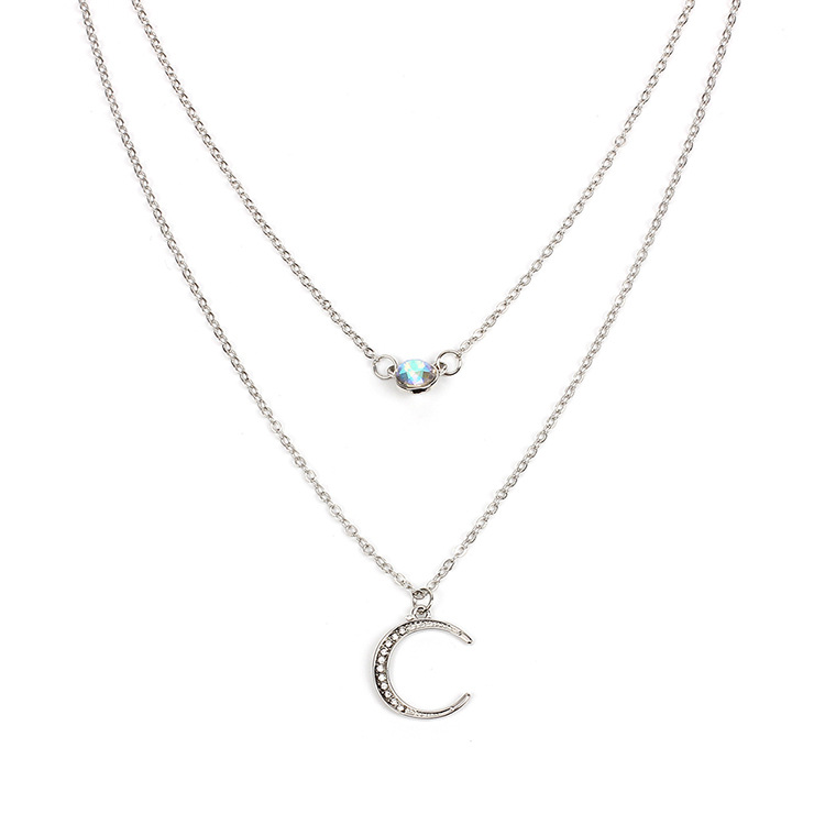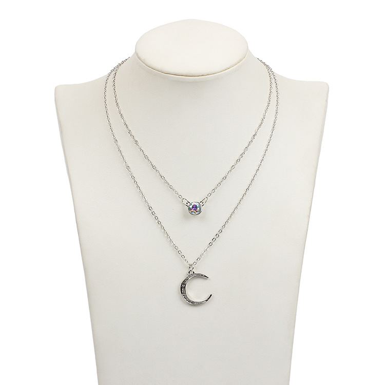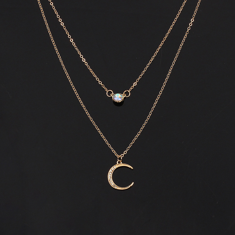 European and American Cross-border Jewelry Moon Pendant Multi-layer Necklace Rhinestone chocker Chain Clavicle Chain
