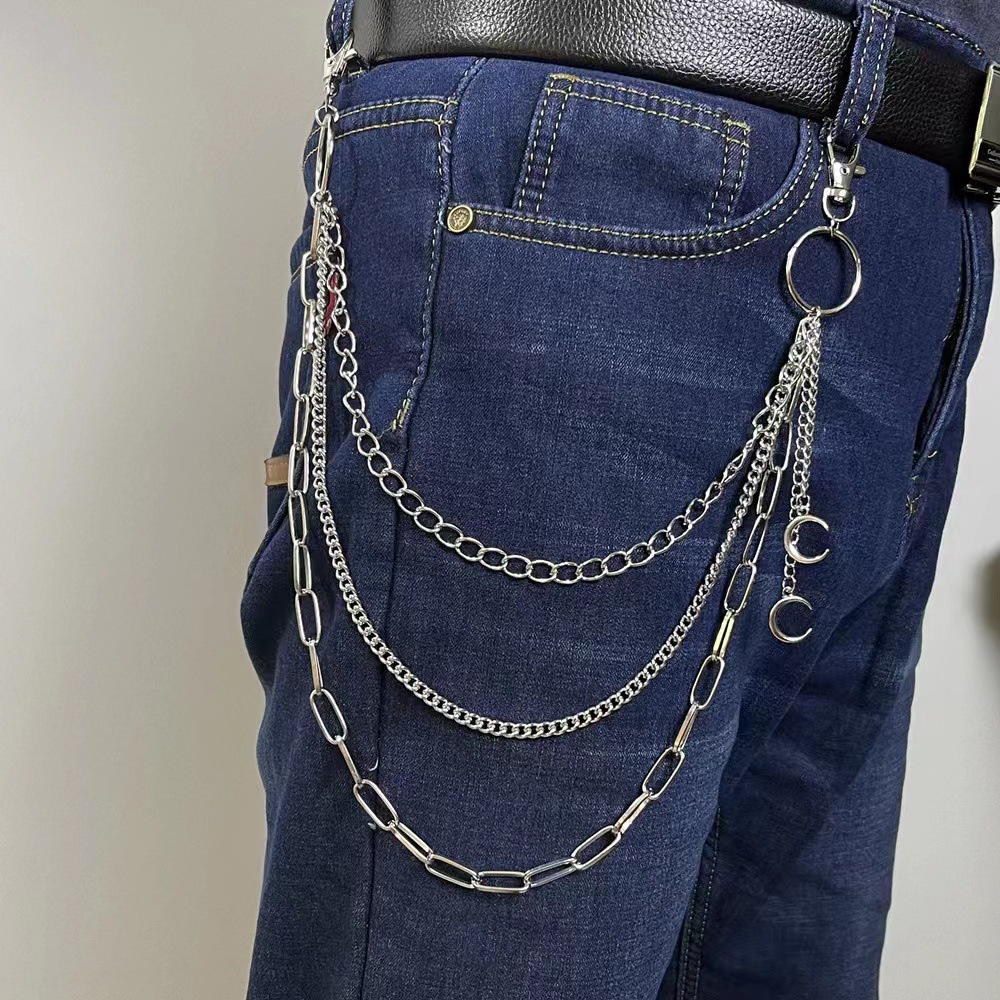 European and American Cross-border Jewelry Punk Metal Crescent Geometric Chain Pant Chain Hip-hop Trendy Cool All-match Waist Chain for Men and Women