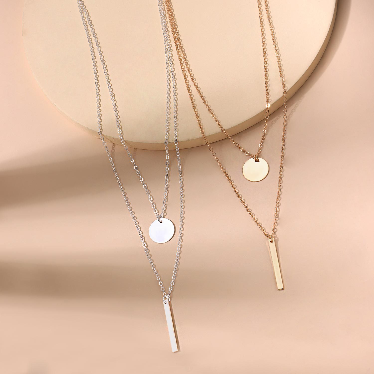 European and American cross-border jewelry retro simple alloy metal rod necklace sequined women’s clavicle necklace