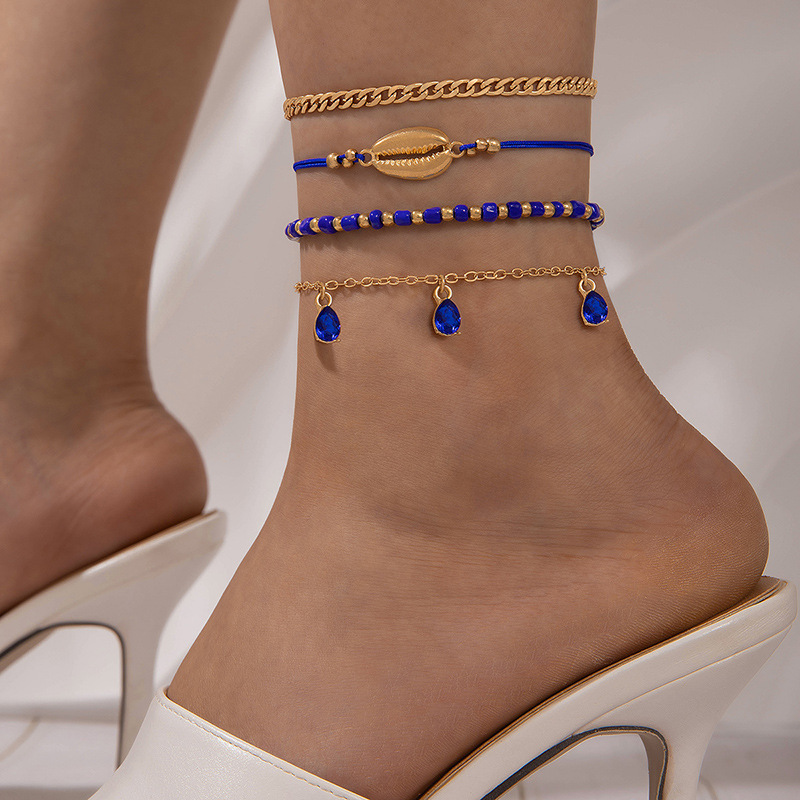 | nameOriginal | European and American cross-border jewelry rice beads beaded braided rope shell four-layer anklet geometric diamond-embedded leaves multi-layer anklet suit |