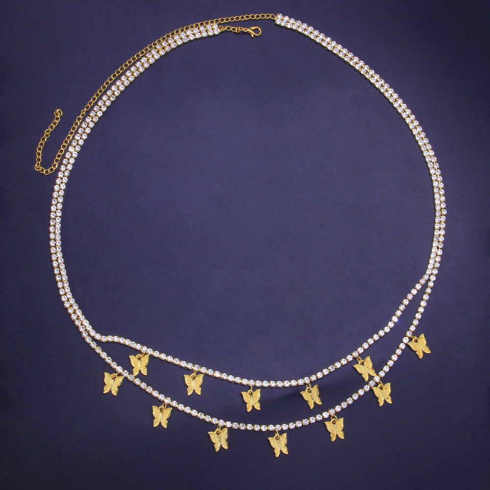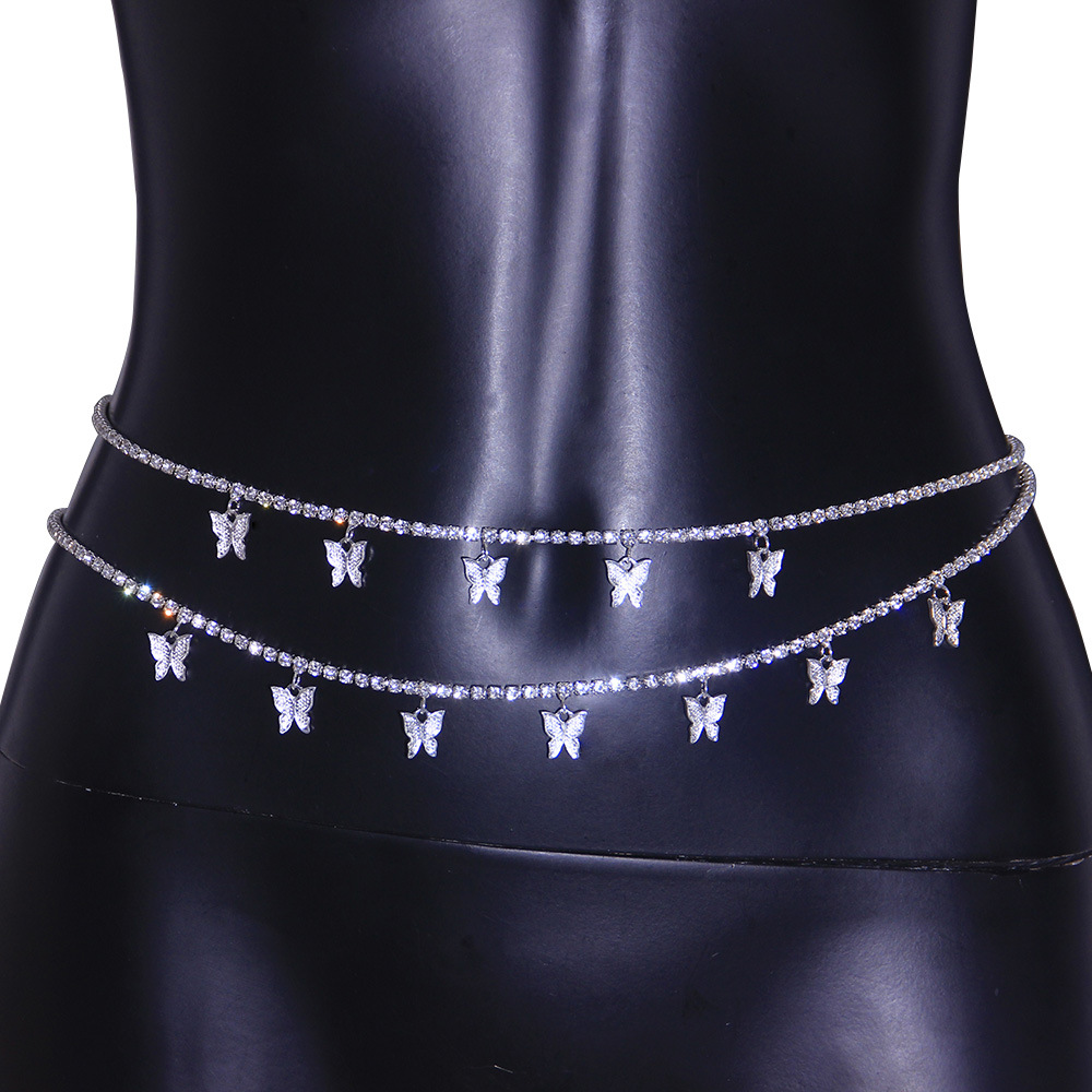 European and American cross-border jewelry simple micro-inlaid rhinestone multi-layer body chain temperament sexy butterfly waist chain Waistchain