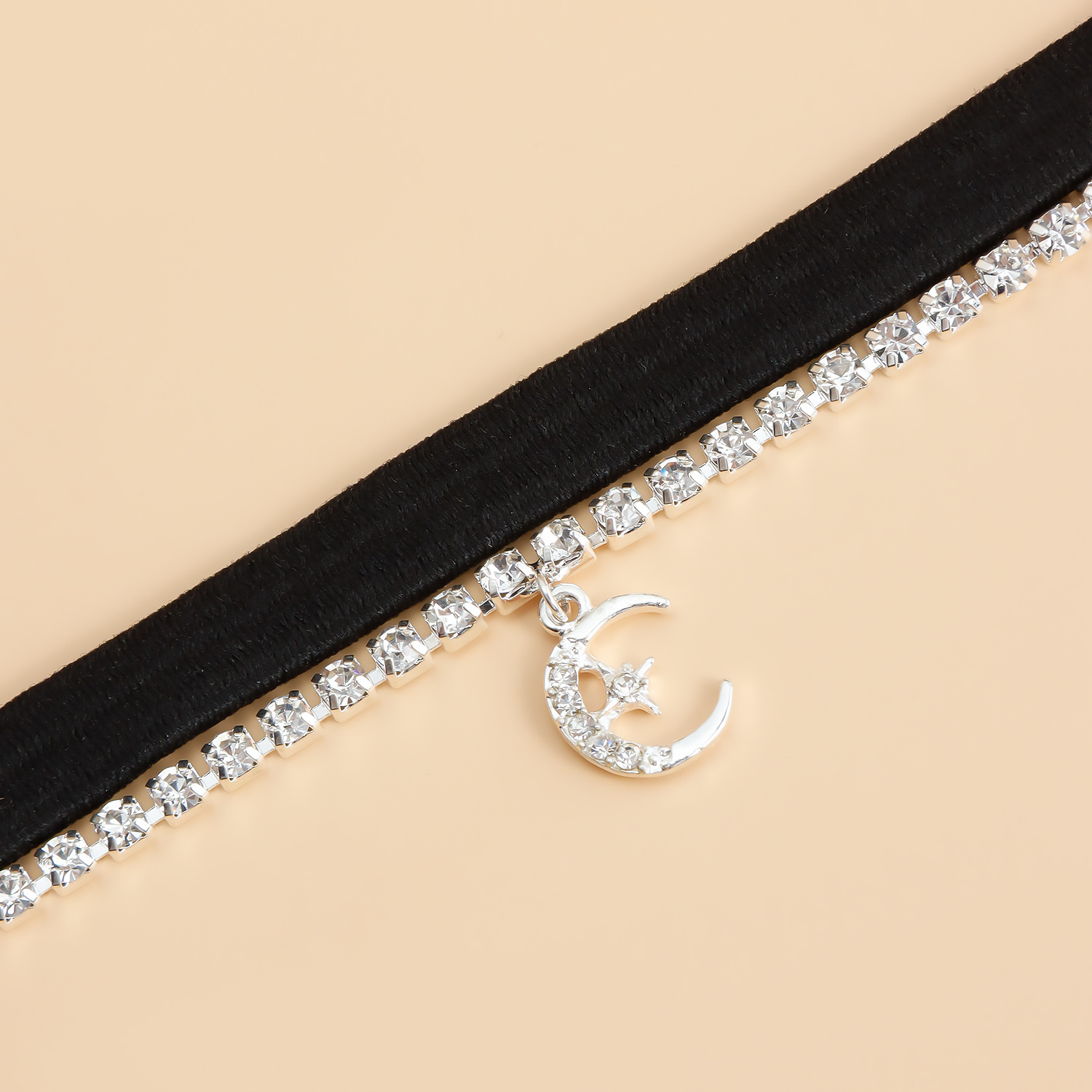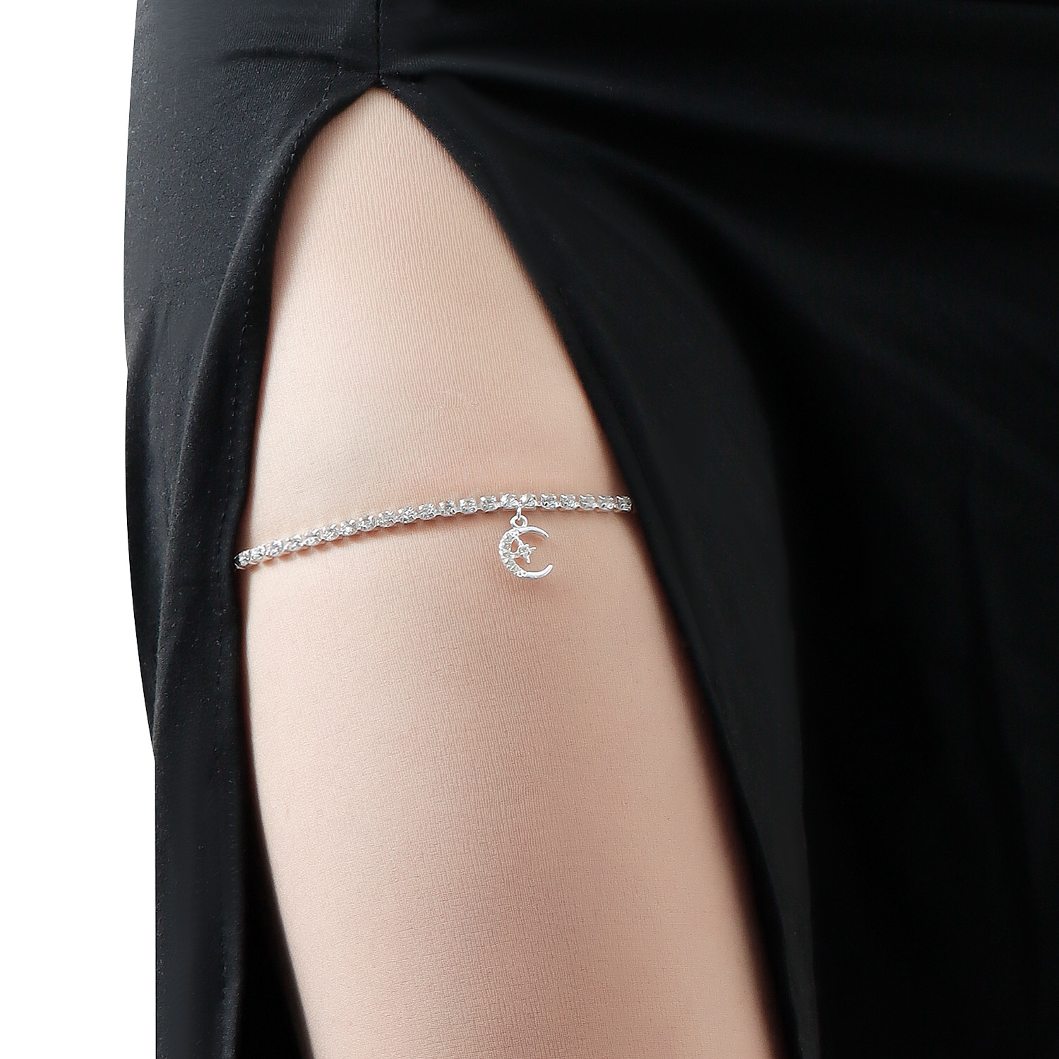 | nameOriginal | European and American cross-border jewelry simple rhinestone chain leg chain black elastic with crescent pendant leg ring beach all-match |