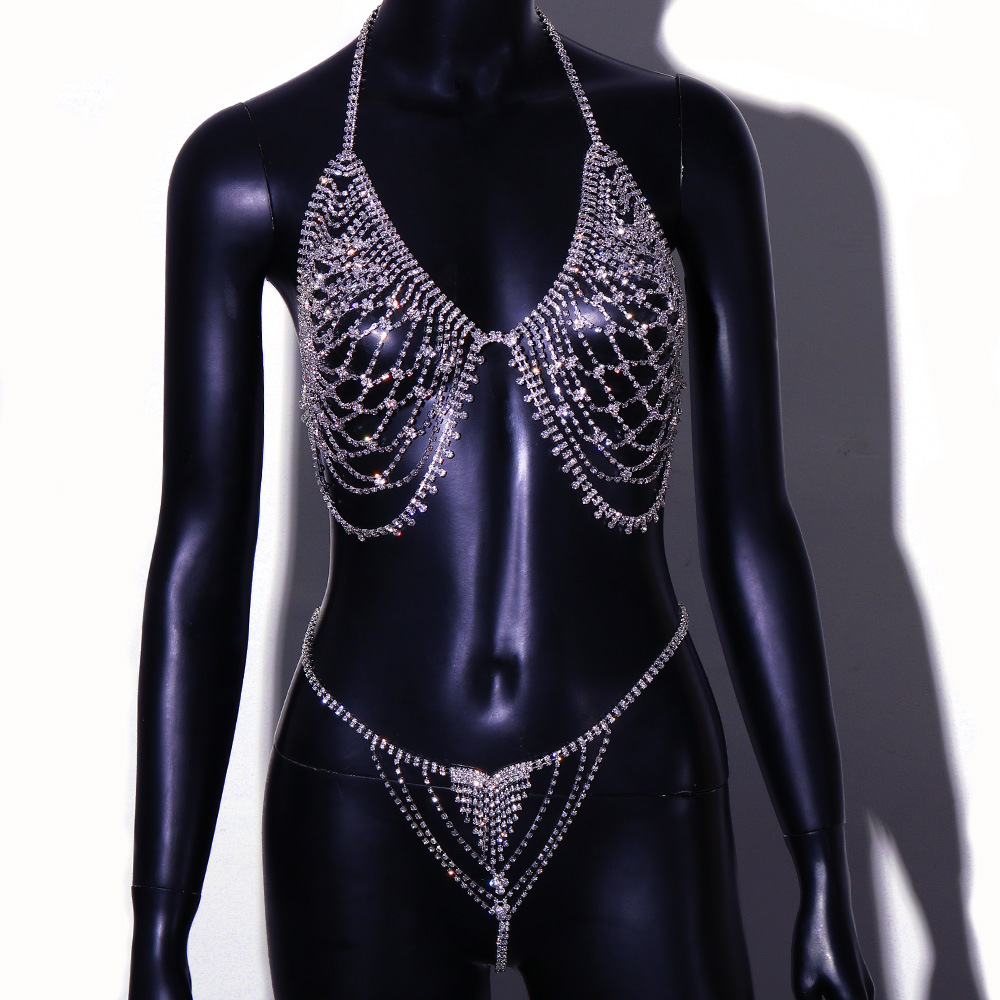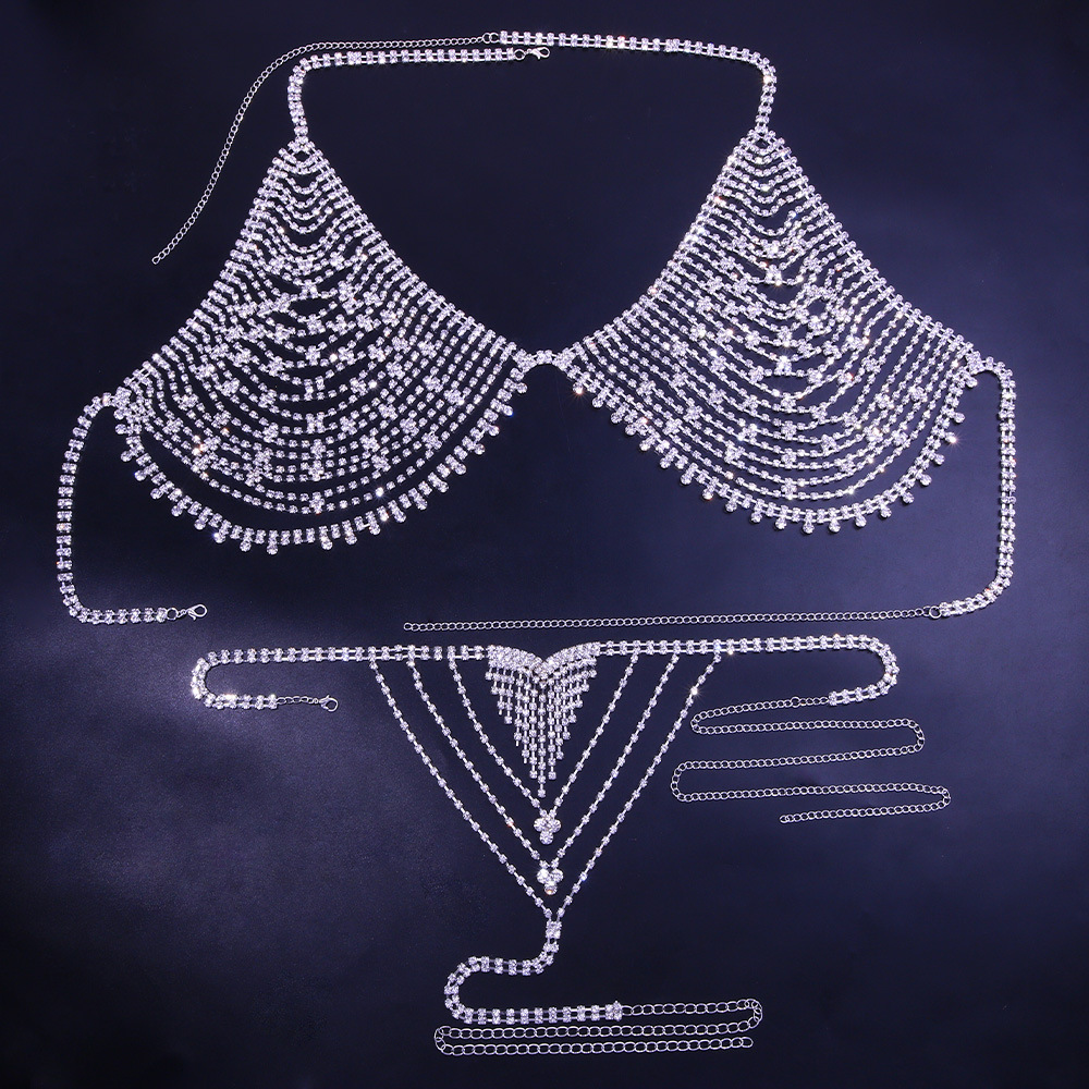 | nameOriginal | European and American Cross-border Jewelry Wave Hollow Body chain Set Beach Shiny Fishing Net Diamond Bra chain |