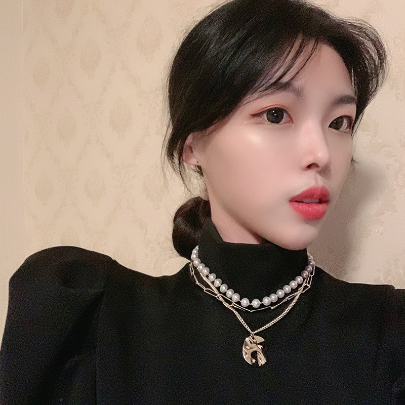 European and American cross-border multi-layer Pearl wafer necklace ins simple fashion short clavicle necklace necklace