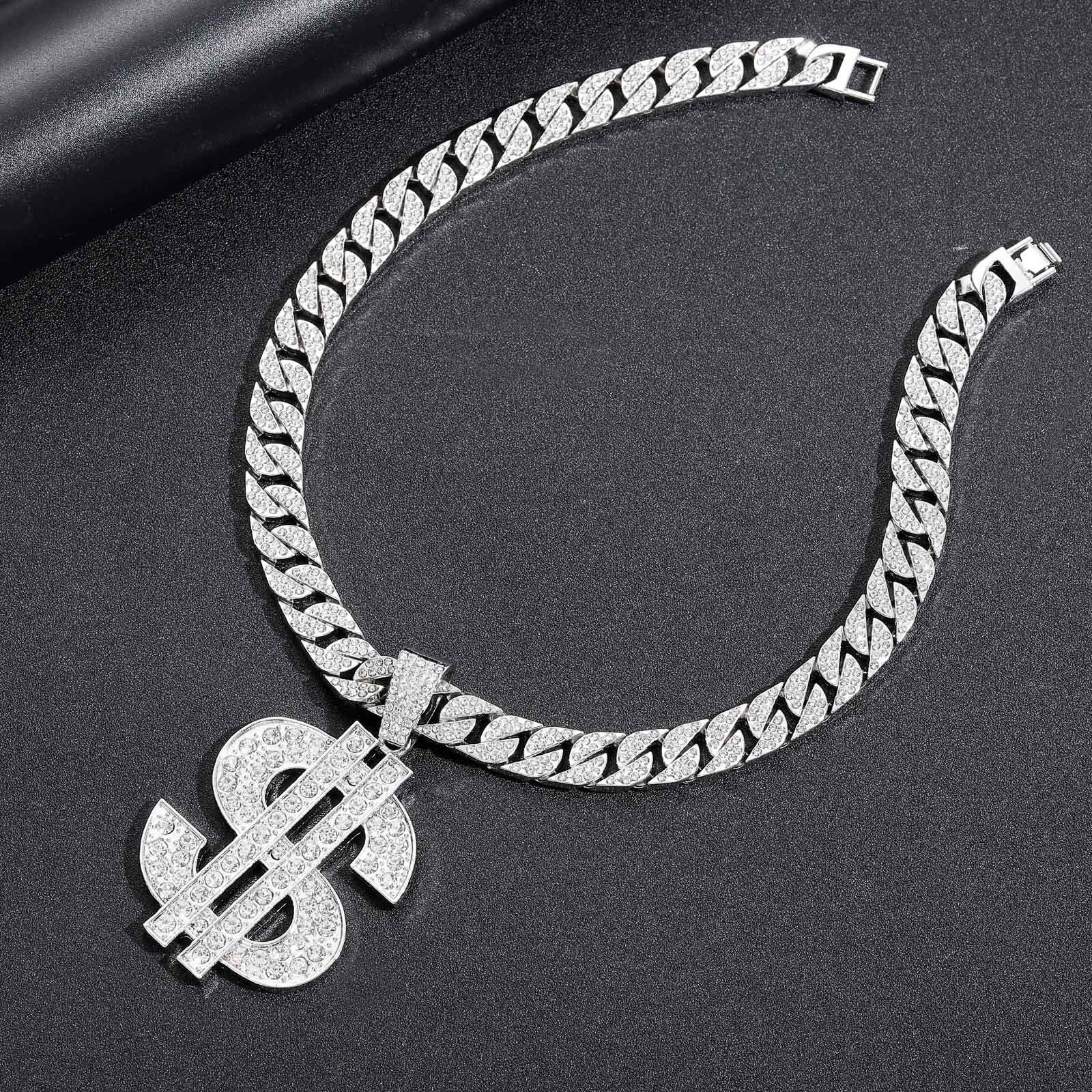 | nameOriginal | European and American cross-border necklace hip hop large dollar symbol pendant US dollar full diamond Cuban chain men's hip hop accessories |