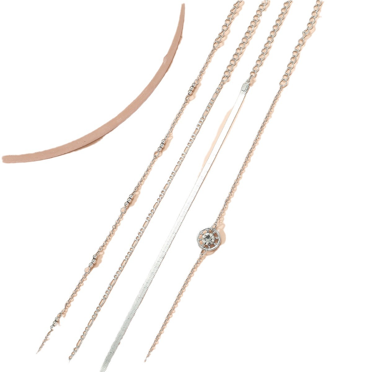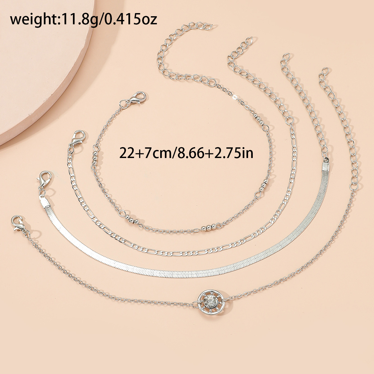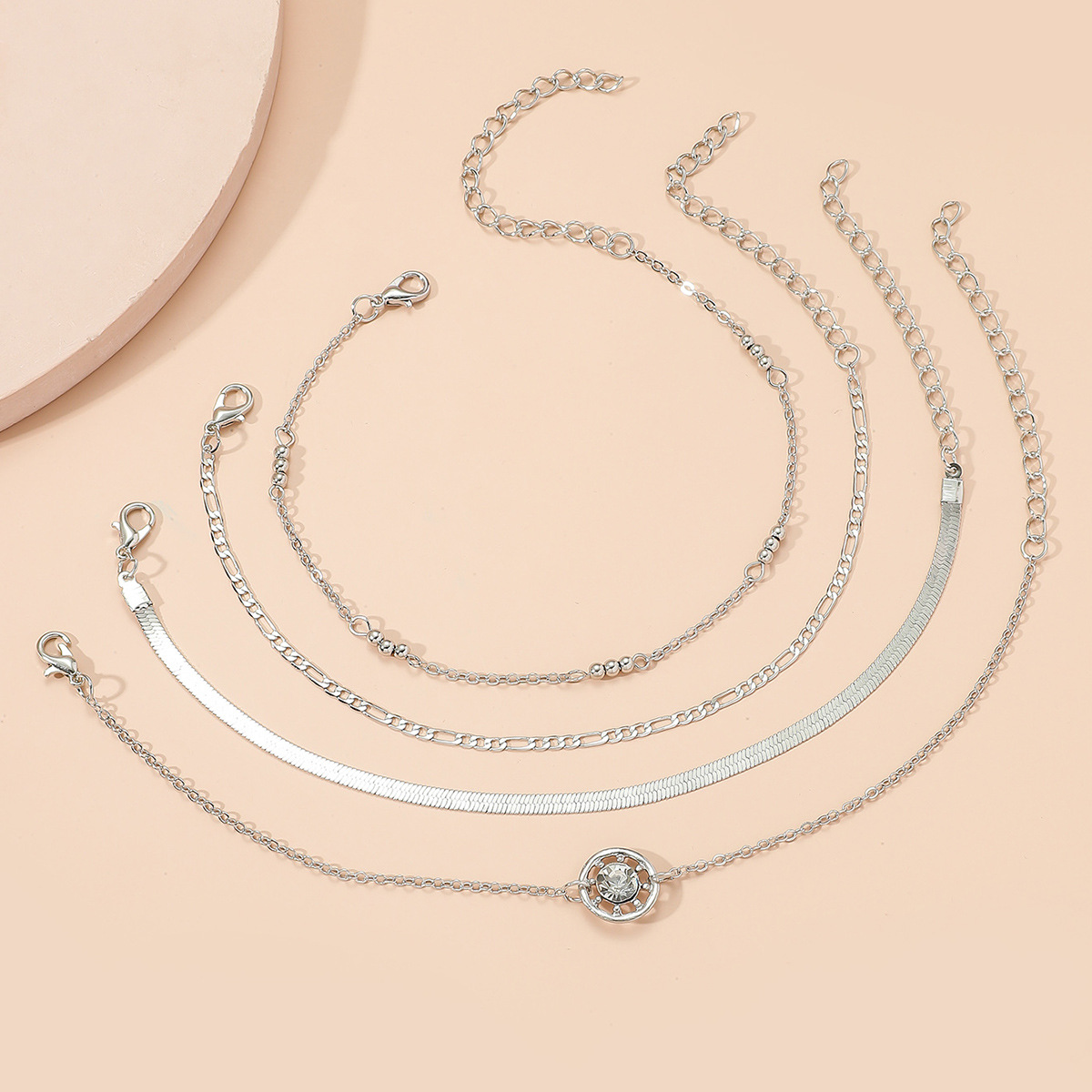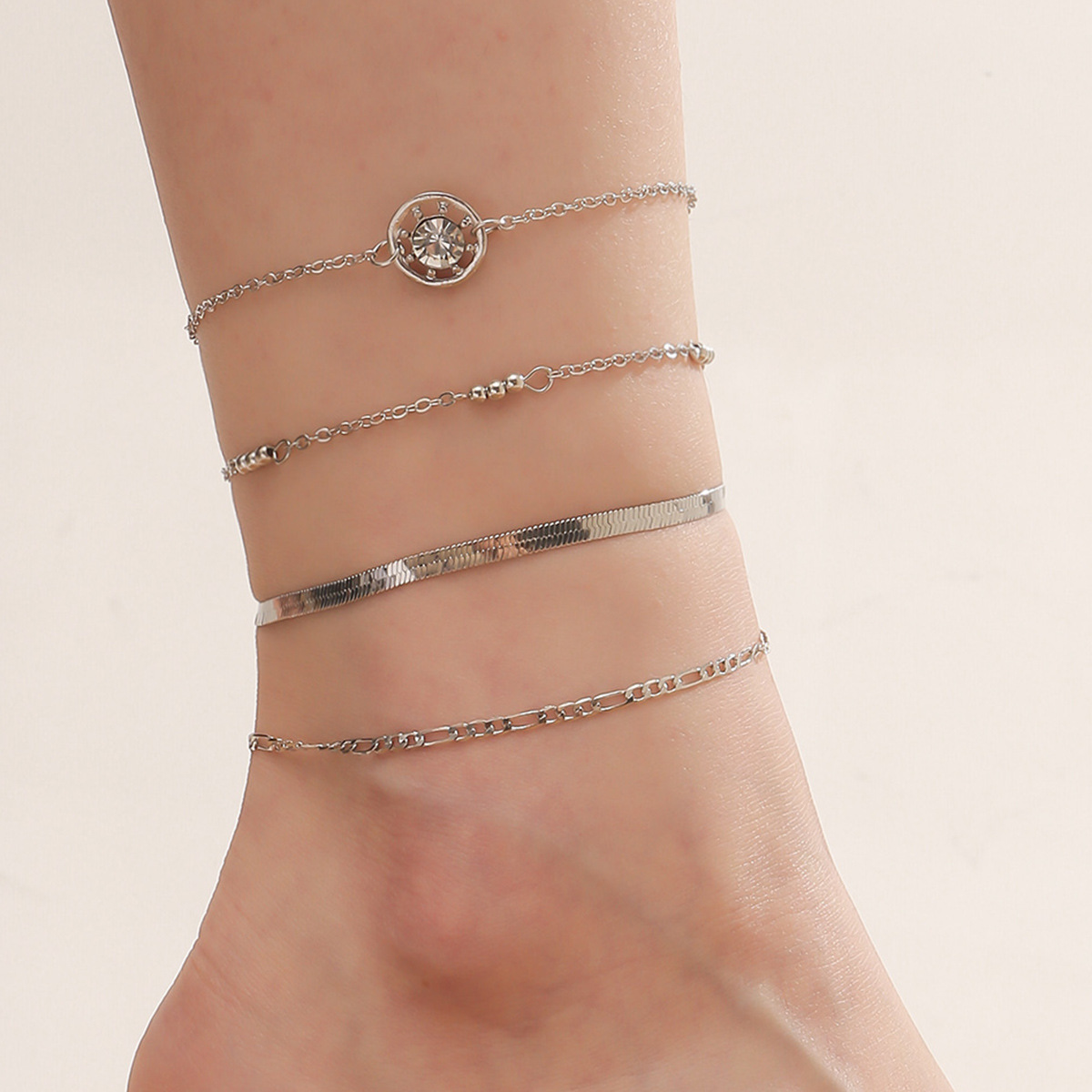 European and American cross-border new foot decoration fashion simple diamond-embedded multi-layer metal chain anklet 4-piece set Wholesale