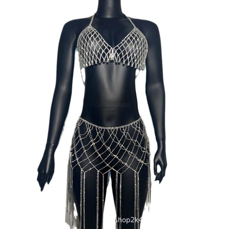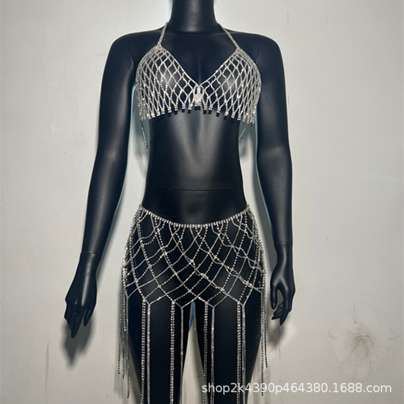 | nameOriginal | European and American Cross-border New Mesh Waist Tassel Rhinestone Shiny Innovation Exaggerated Body Chain Bikini Beach Accessories |