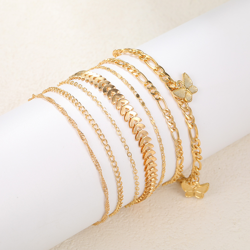 | nameOriginal | European and American cross-border new retro love butterfly anklet suit seven-piece set women's elegant beach style anklet suit |