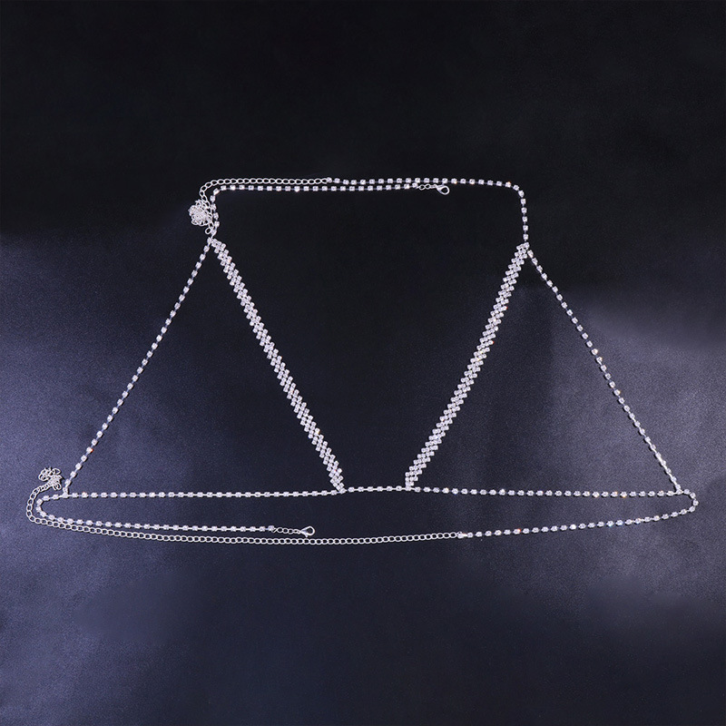 | nameOriginal | European and American cross-border new simple diamond rhinestone chest chain summer beach bikini body chain body chain |