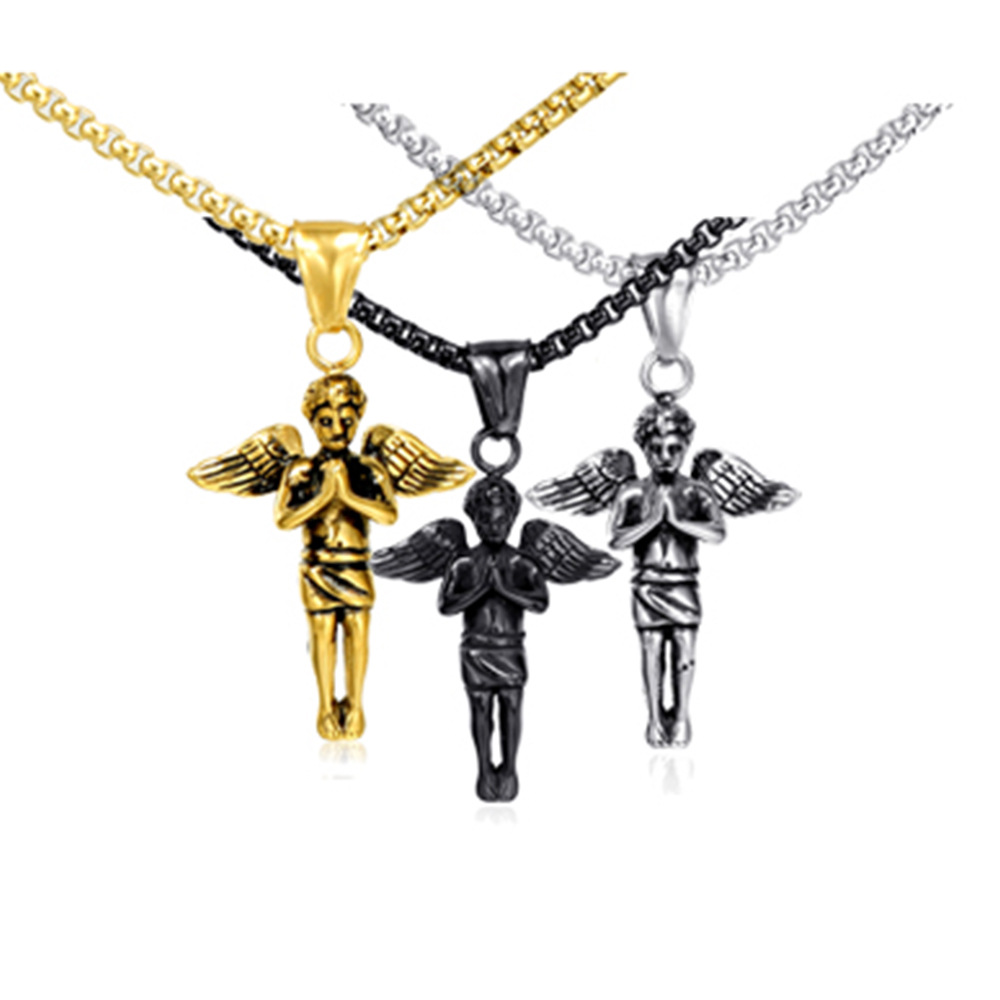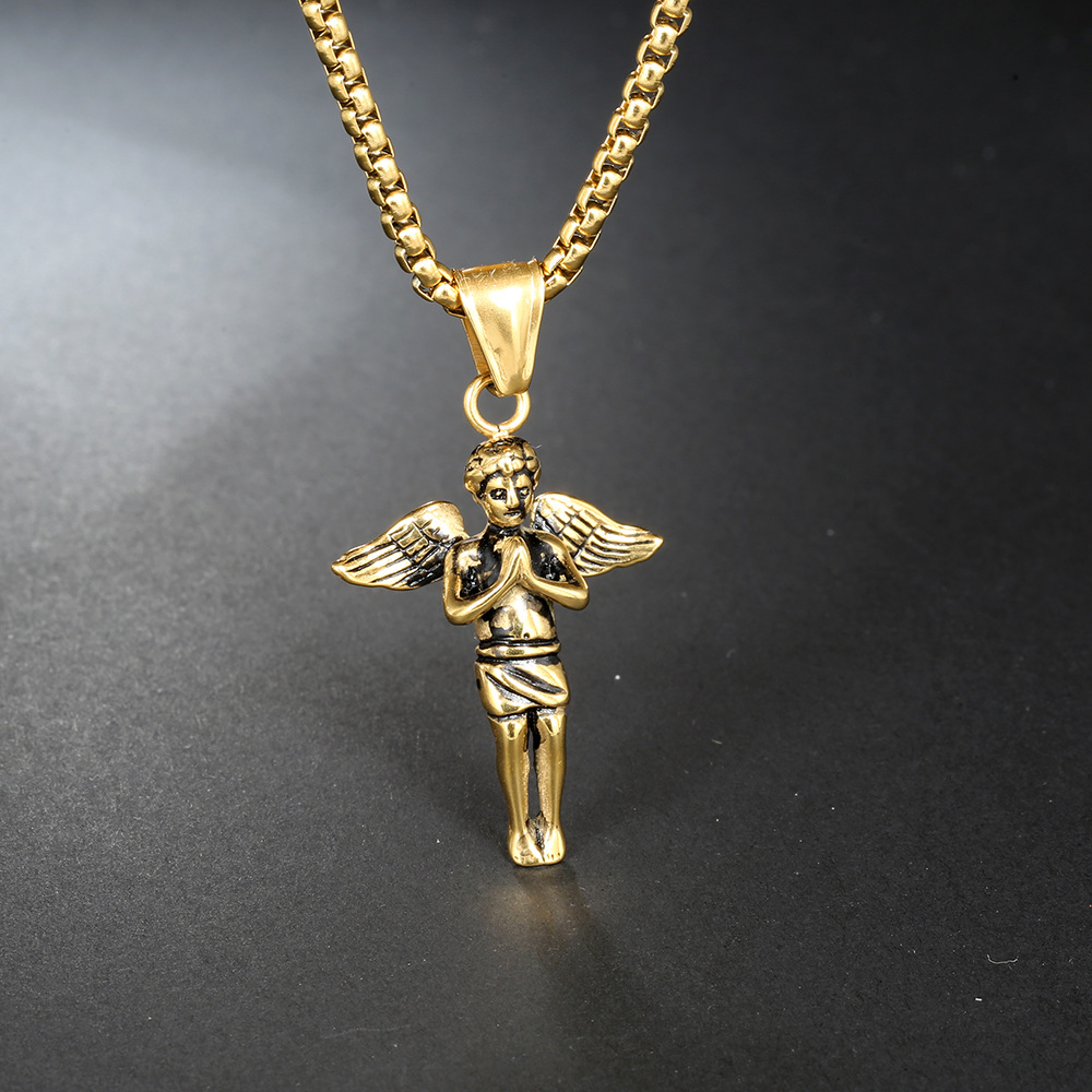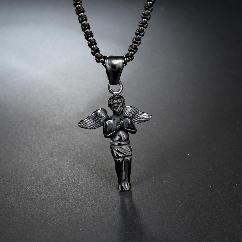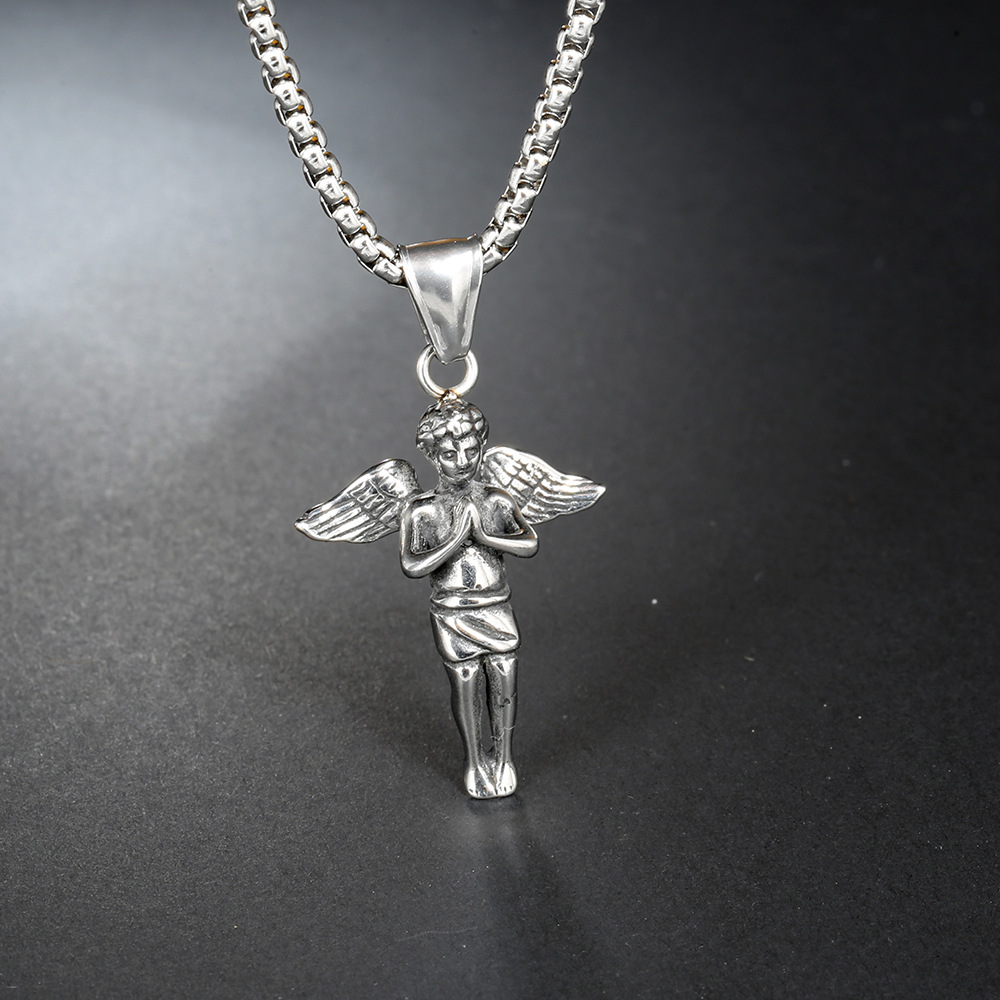 | nameOriginal | European and American cross-border new stainless steel angel prayer necklace men's titanium steel pendant chain jewelry necklace factory |