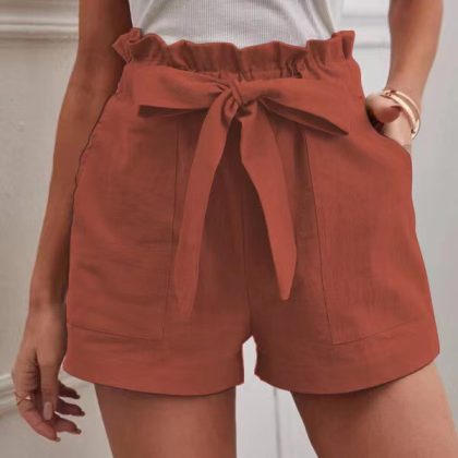 | nameOriginal | European and American Cross-border New Summer Bow Tie Women's Loose Casual Shorts Pocket Solid Color Large Size High Waist Wide Leg Pants |