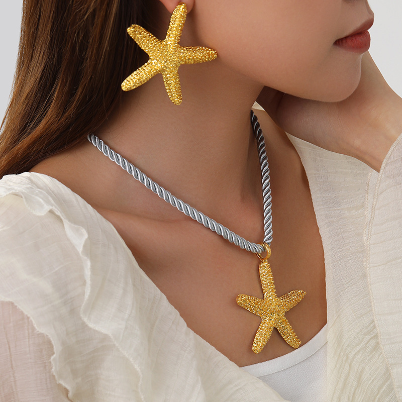 | nameOriginal | European and American Cross-border Personality Party Exaggerated Stars Holiday Beach Sea Starfish Pendant Necklace Earrings Jewelry suit |