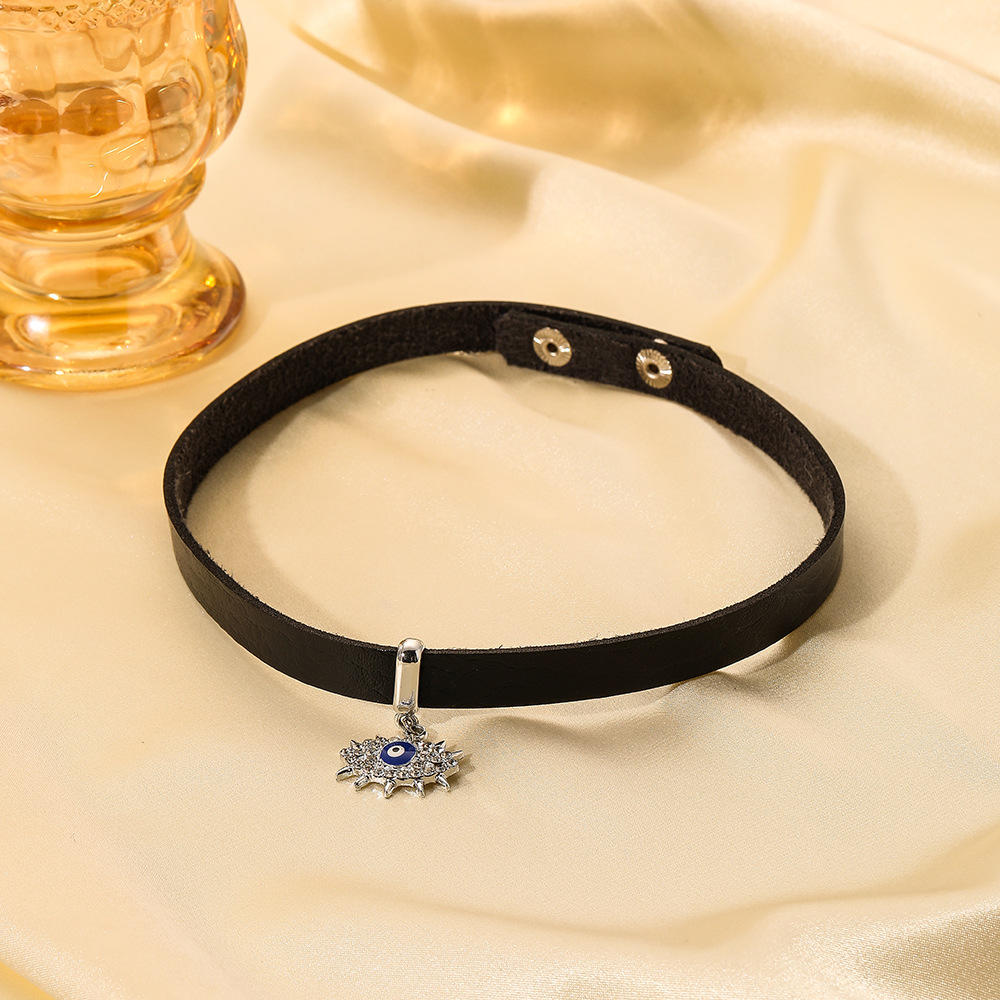 | nameOriginal | European and American cross-border personalized light luxury fashion versatile creative short personalized leather rope full diamond eye necklace necklace |