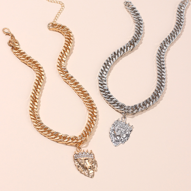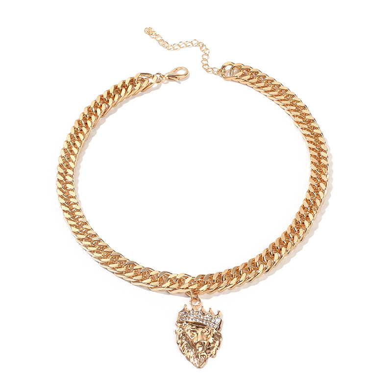 | nameOriginal | European and American cross-border popular exaggerated gold necklace ins French choker Diamond-embedded lion head pendant clavicle necklace |
