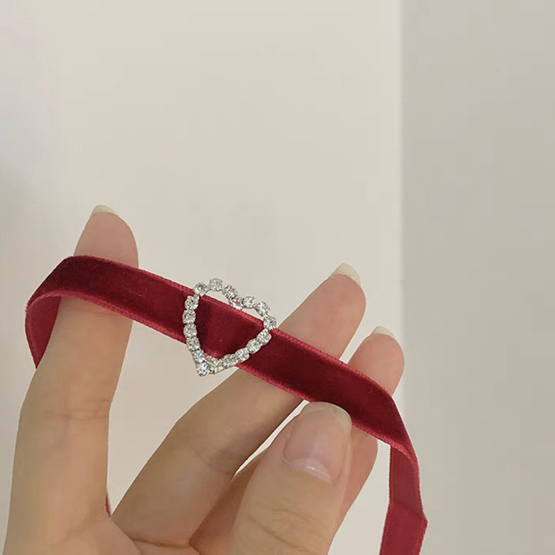 European and American Cross-border Red Velvet Diamond Love choker Short Necklace Collar Chain chocker