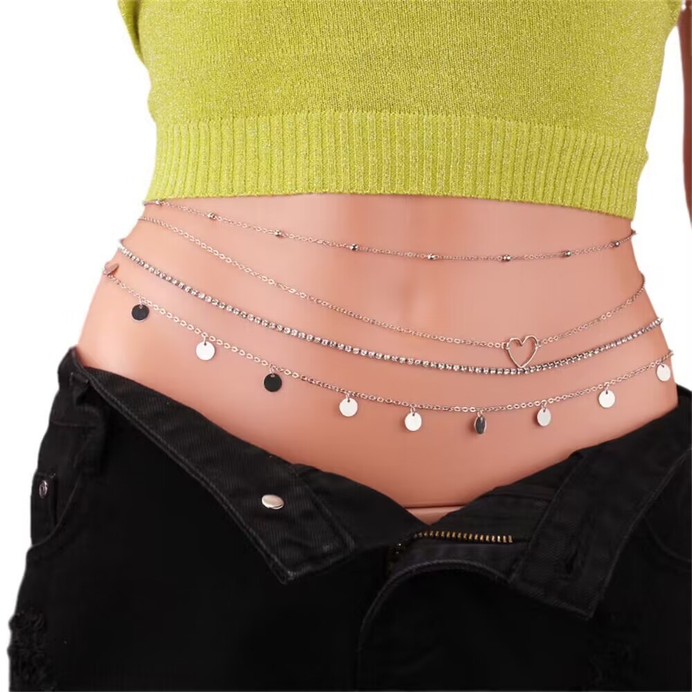 European and American cross-border sexy all-match waist chain hot girl thin chain waist chain bikini beach peach heart sequin body chain