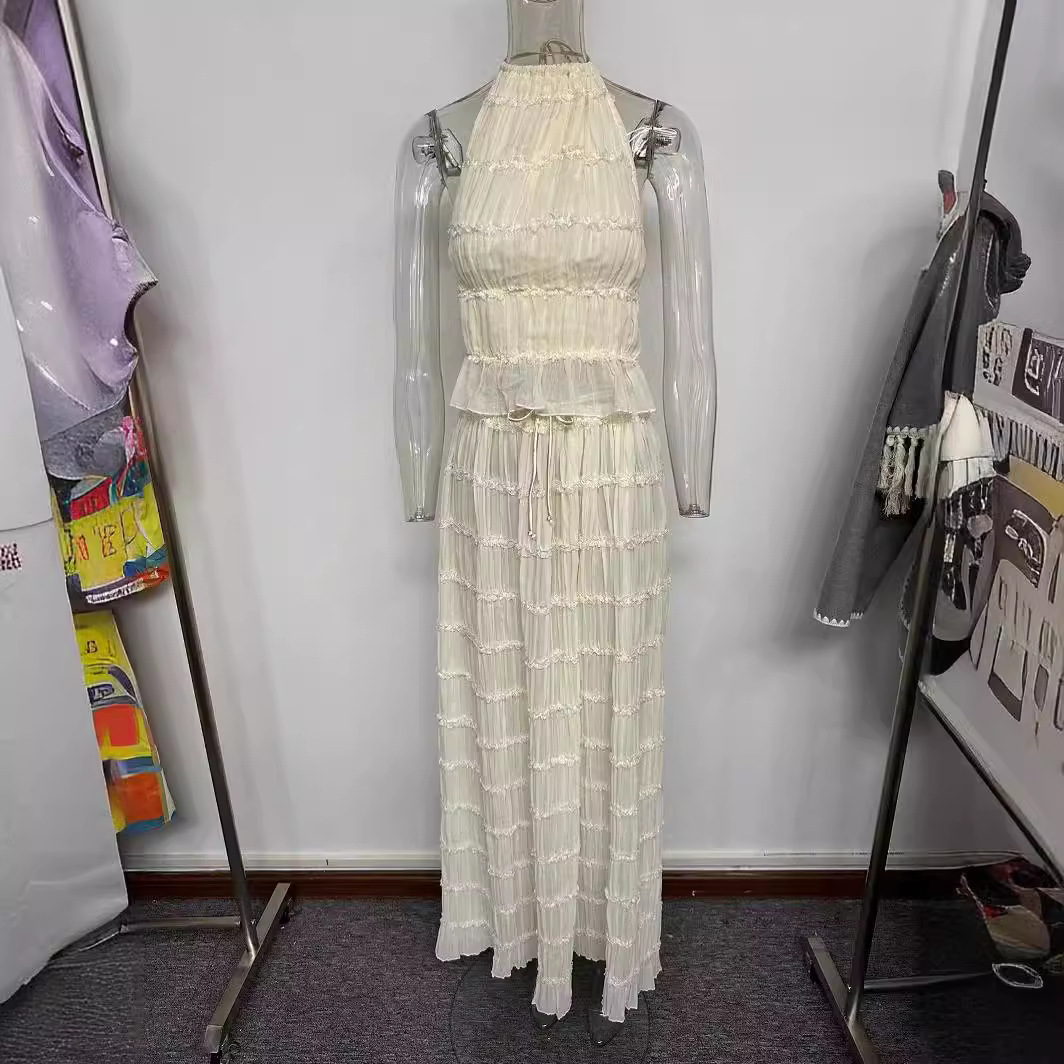 | nameOriginal | European and American cross-border summer new backless halter strap drawstring chiffon pleated dress two-piece set |