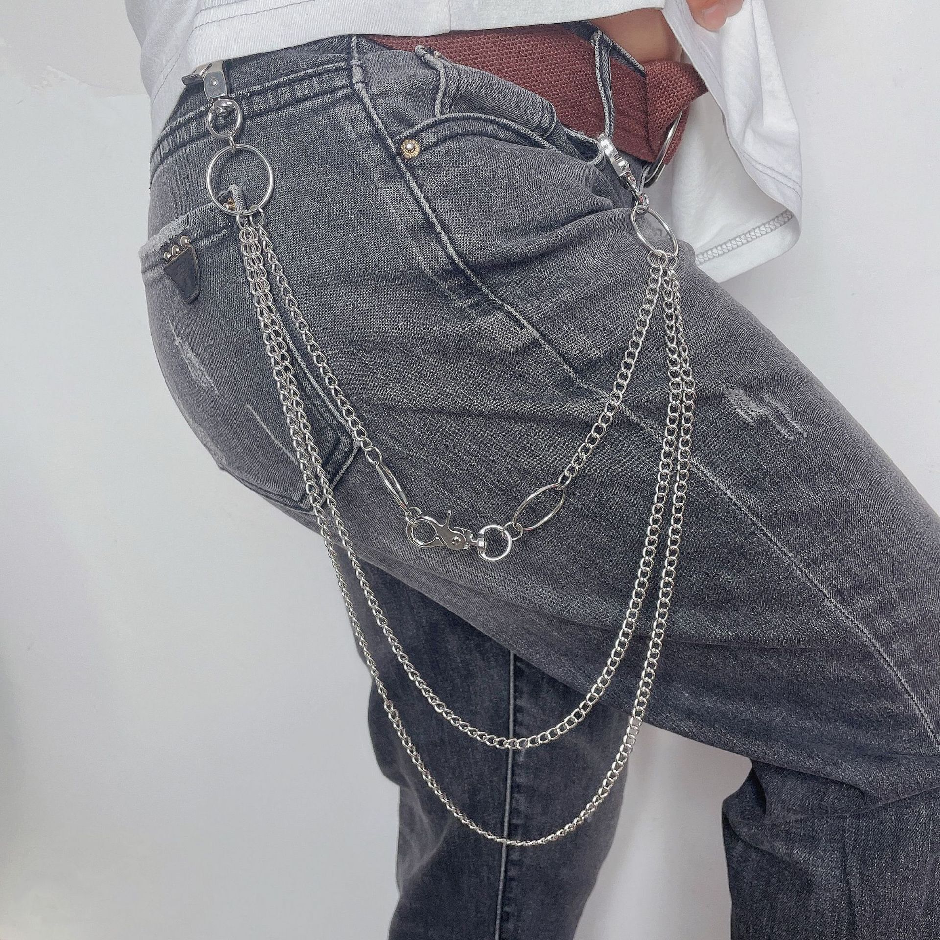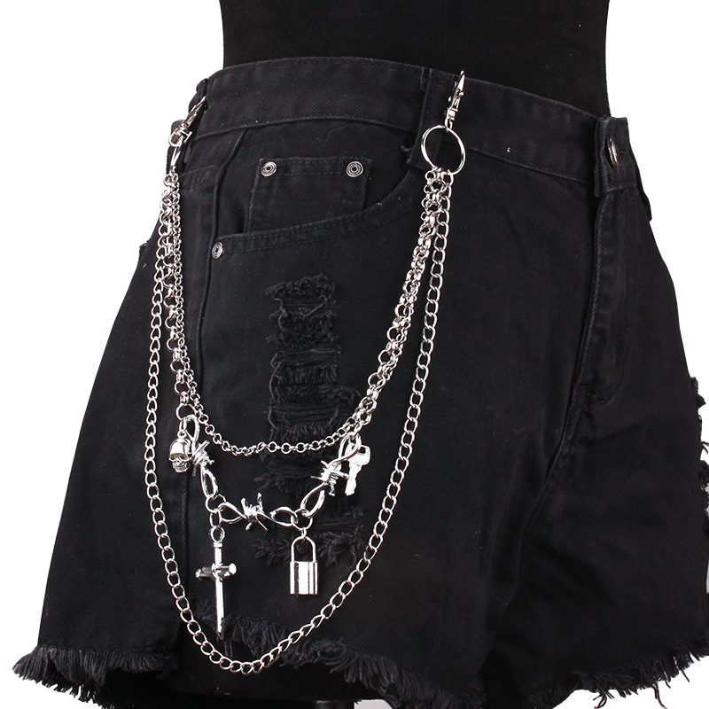 European and American Cross-border Waist Decorations Simple Retro Multi-layer Chain Pants Chain Hip-hop Punk Ring Keychain Body Chain