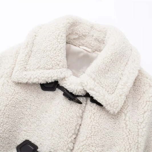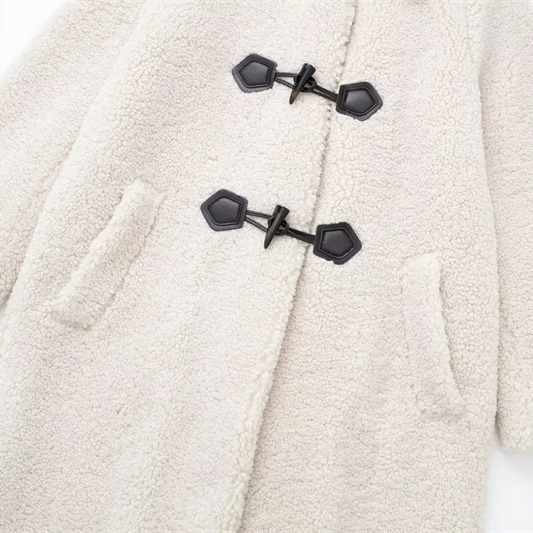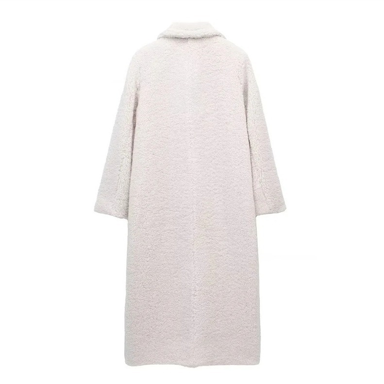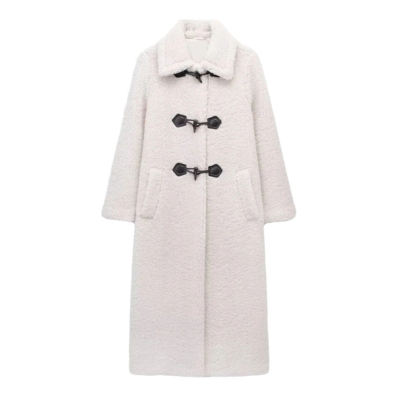 European and American Cross-border Women's 2023 Winter New British Style Rope Buckle Fleece Coat Thick Loose Over-the-knee Jacket