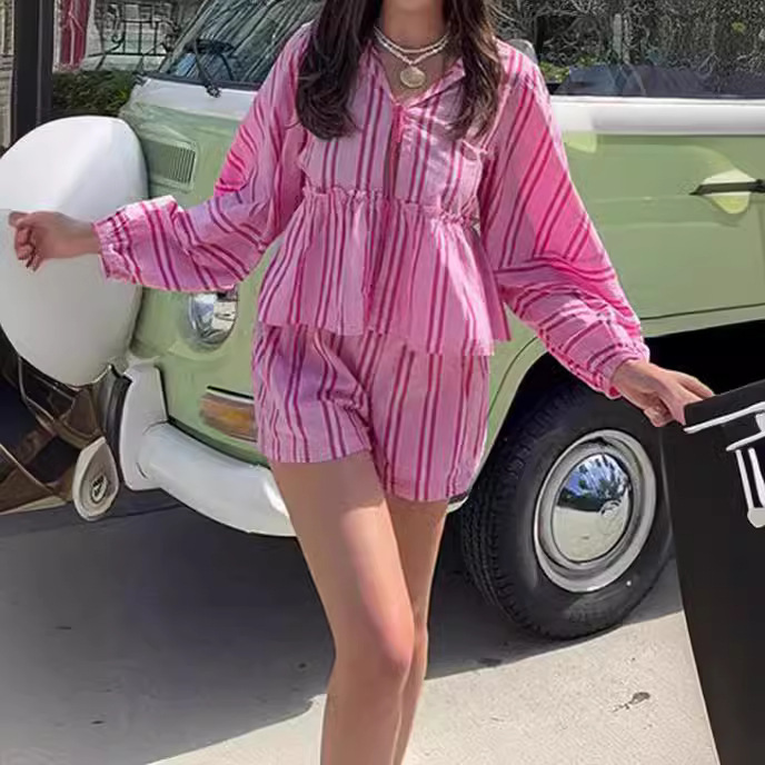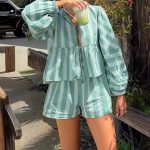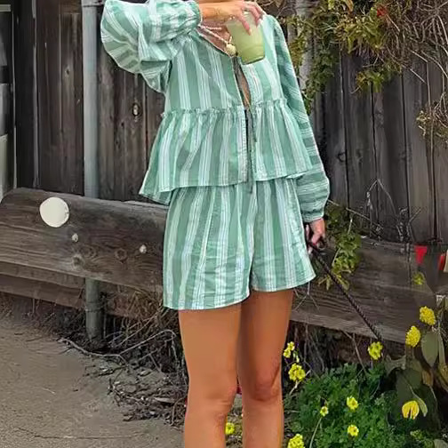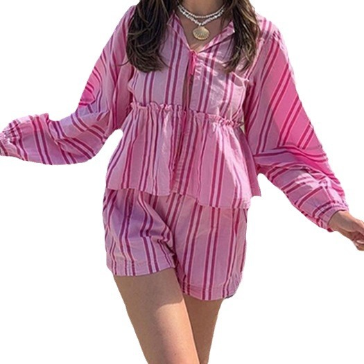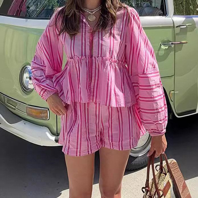 | nameOriginal | European and American Cross-border Women's Wear Spring 2024 New Fashion Casual Striped Lace-up Lantern Sleeve suit Elegant Commuting |