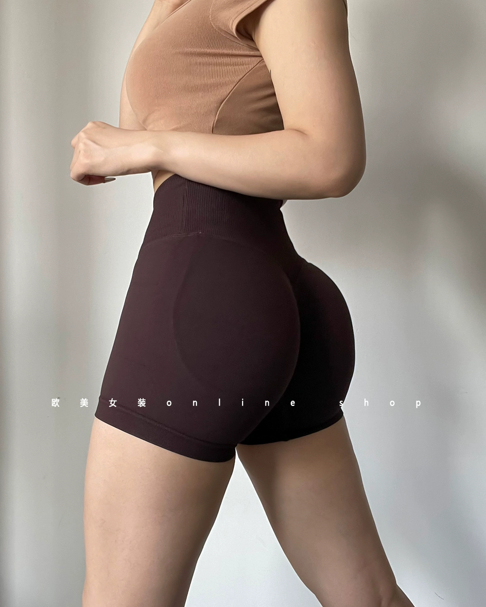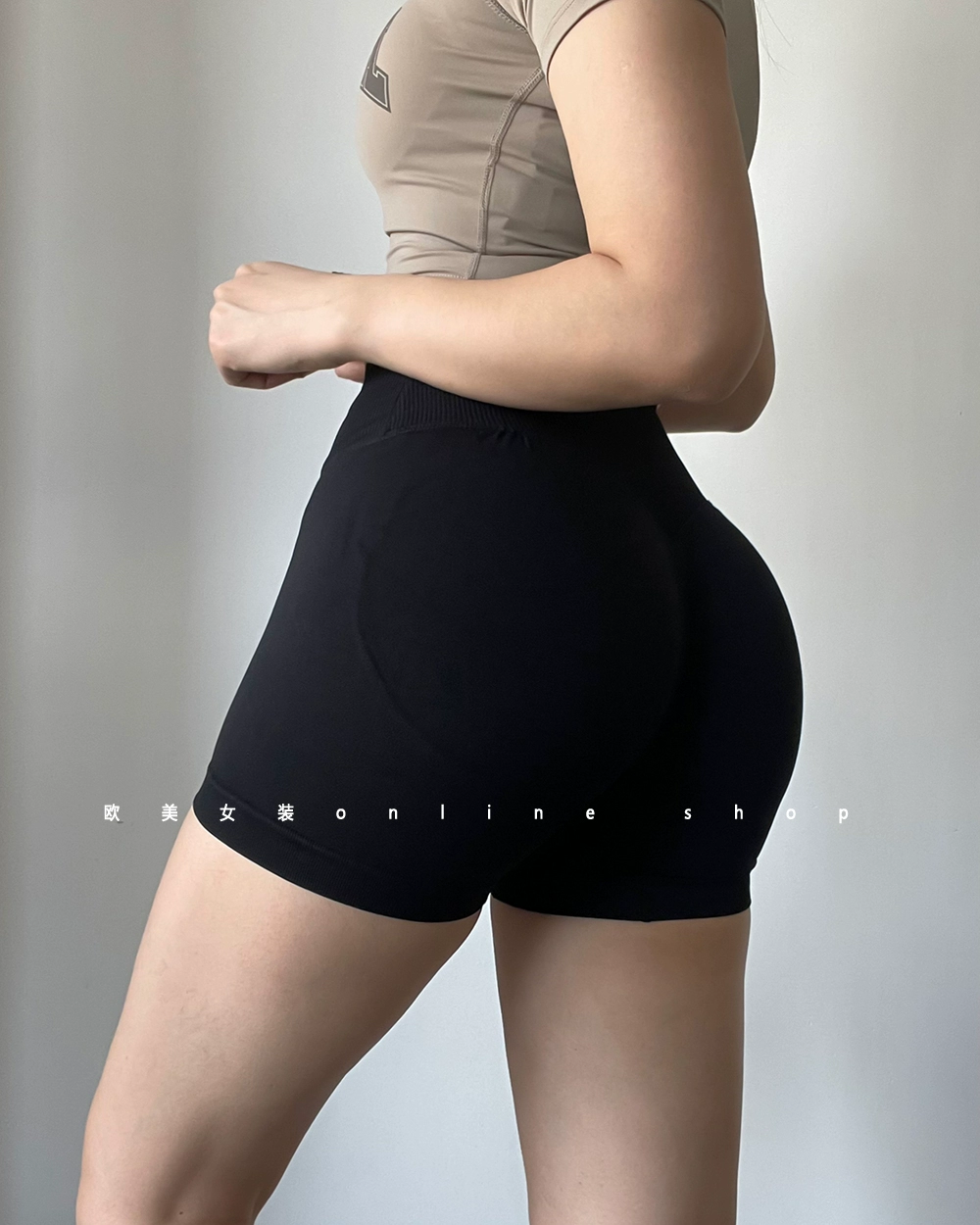 | nameOriginal | European and American cross-waist butt-lifting fitness shorts, abdominal tightening, running sports, peach butt-showing training, three-quarter pants, yoga |