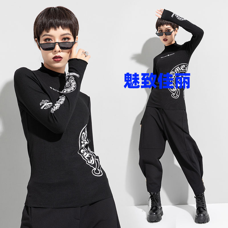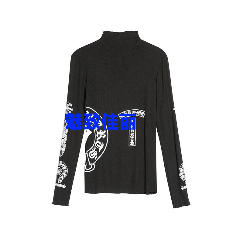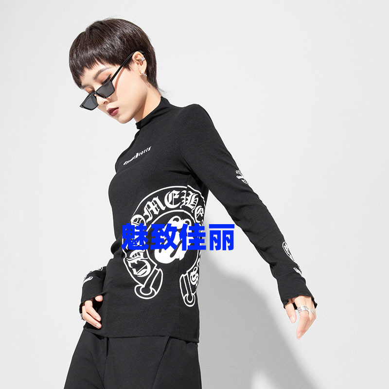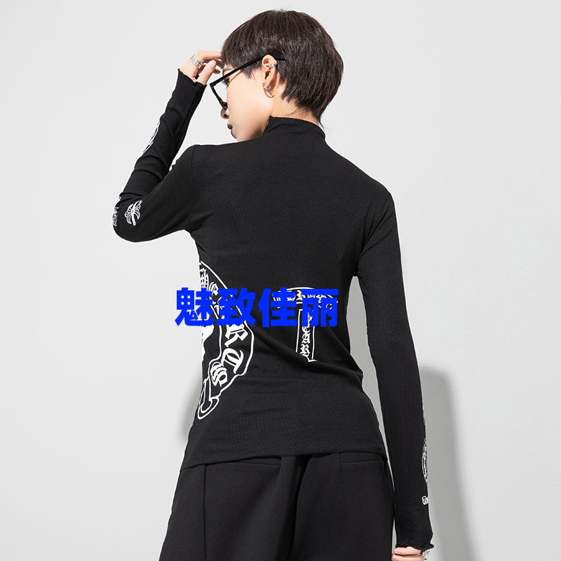 | nameOriginal | European and American dark T-shirt bottoming shirt autumn and winter new women's half turtleneck printed slimming long sleeve T-shirt slim elastic T |
