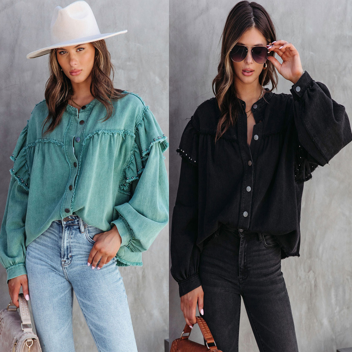 | nameOriginal | European and American denim coat women's autumn and winter 2022 new cross-border foreign trade rivet Burr loose casual jacket 633 |