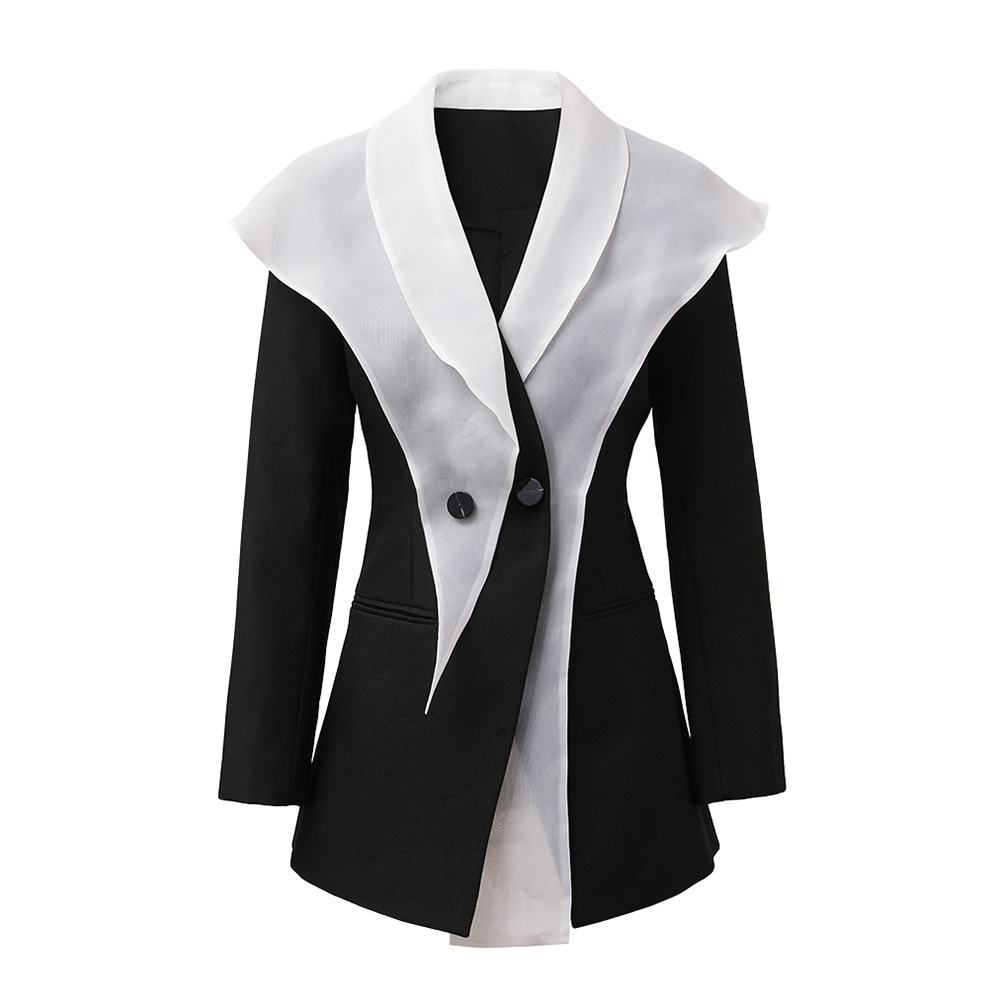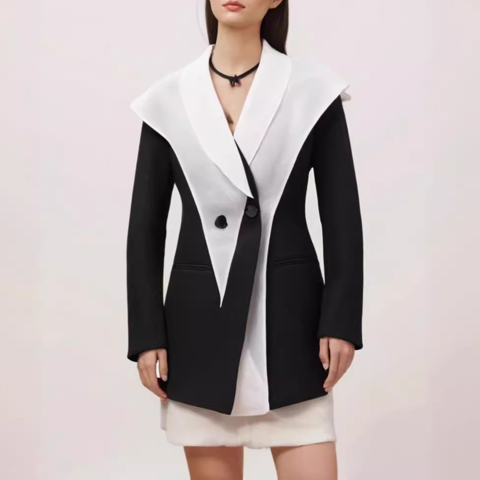 European and American Design Sense Deconstructed Contrast Color Stitching Suit Women’s Autumn New Cloak Waistline Personalized Commuter Jacket