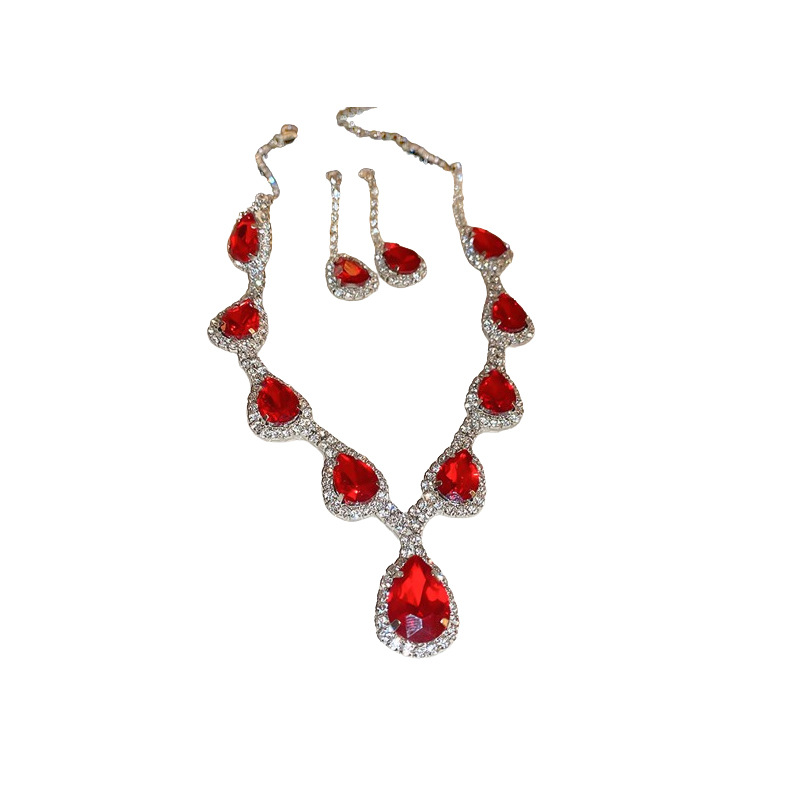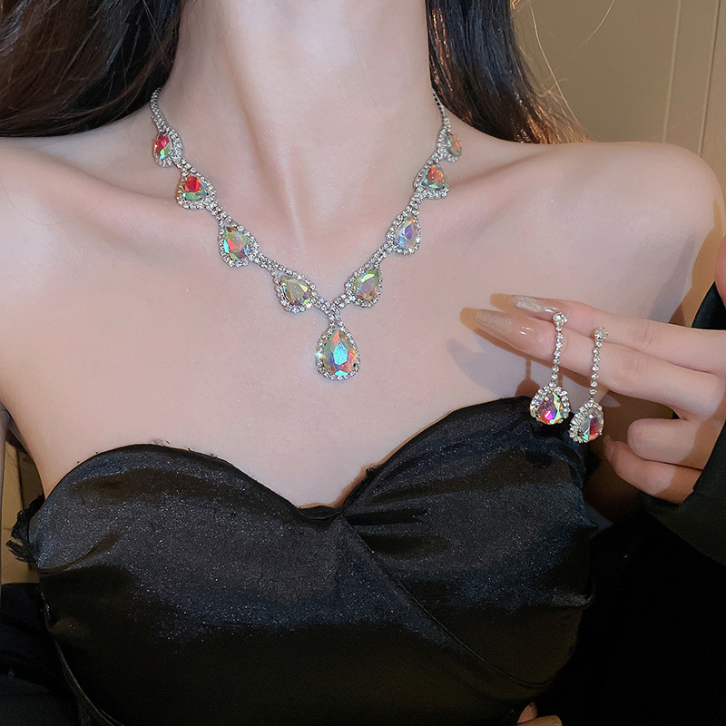 | nameOriginal | European and American diamond-embedded water drop light luxury necklace earrings two-piece set 2024 New elegant commuter clavicle chain Fashion necklace |