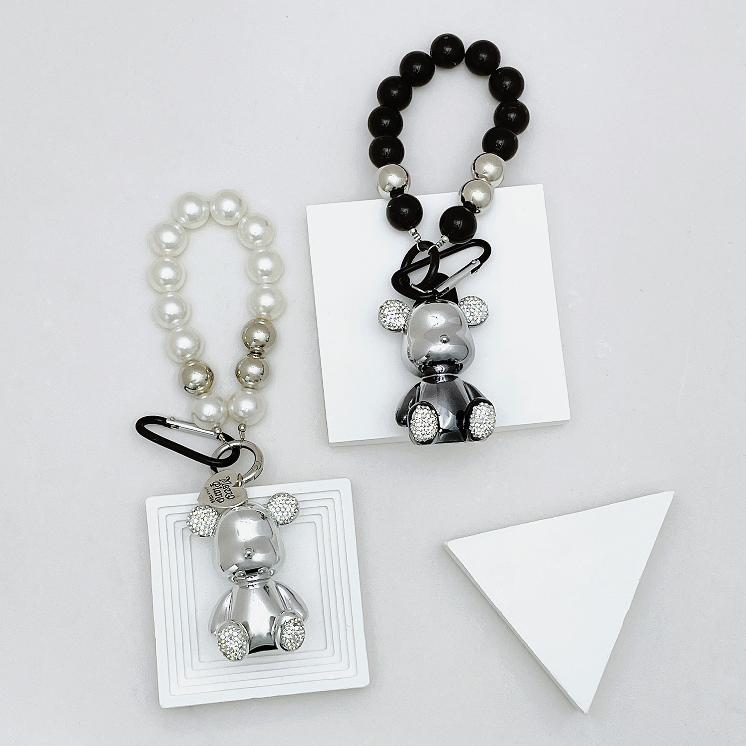 | nameOriginal | European and American diamond plated bear pendant black and white pearl chain key chain accessories violent bear Fashion Women's bag accessories |