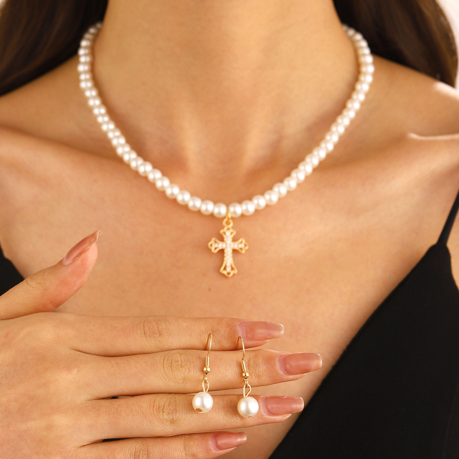 | nameOriginal | European and American elegant imitation freshwater pearl necklace earrings two-piece suit fashionable necklace earrings combination cross-border exclusive |