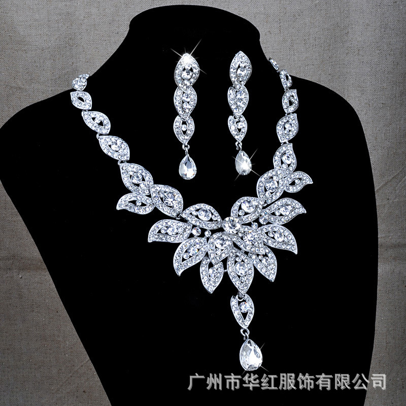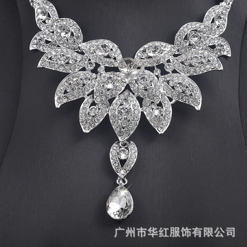 | nameOriginal | European and American Exaggerated Crystal Necklace Earrings Bride Wedding Dress Accessories Luxury Retro Two-piece Cross-border Clavicle Chain |