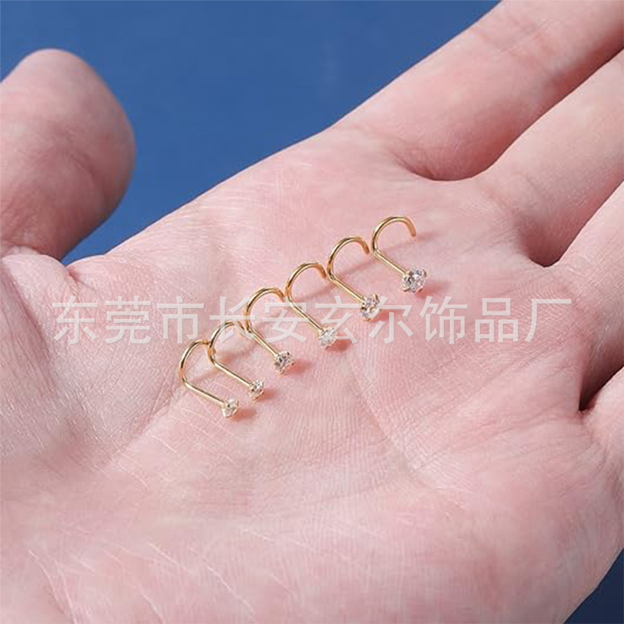 | nameOriginal | European and American explosions inlaid zircon 7-shaped nose nail 5-shaped nose ring human body piercing jewelry stainless steel lip nail wholesale |
