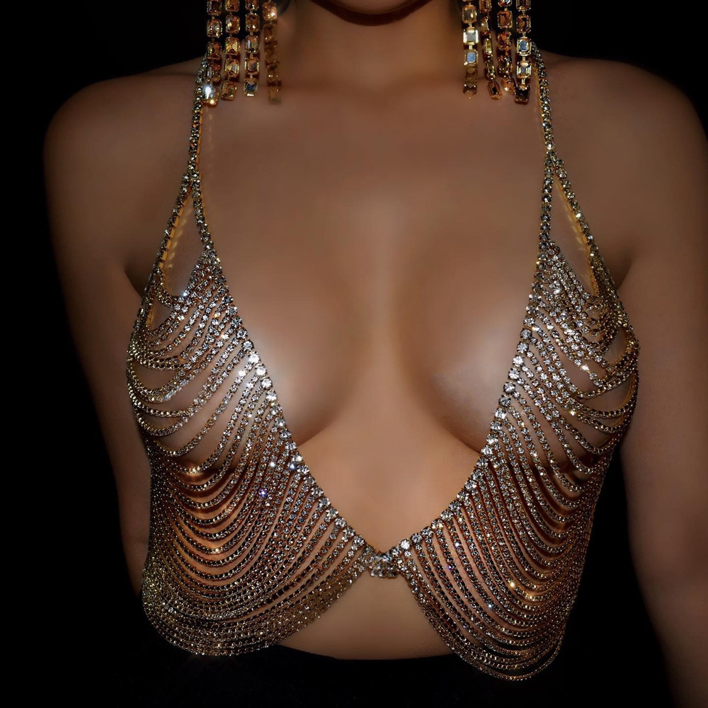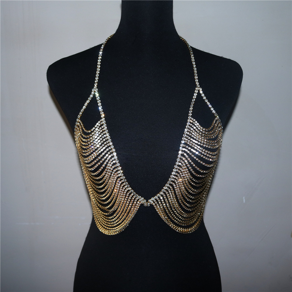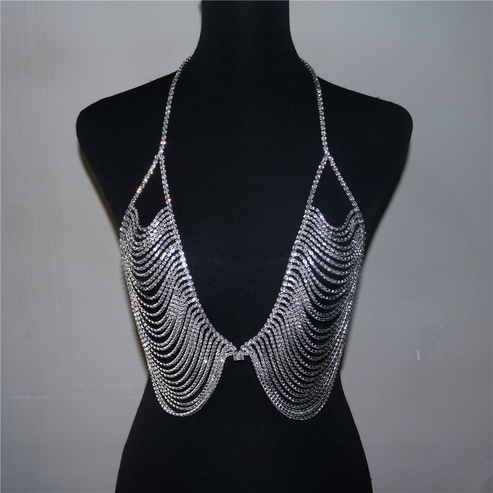 | nameOriginal | European and American Explosions Rhinestone Hollow-out Diamond-encrusted Chest chain Personality Irregular Tassel Bra body Accessories body chain |