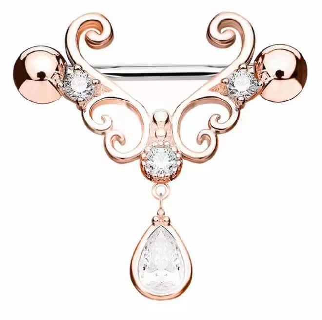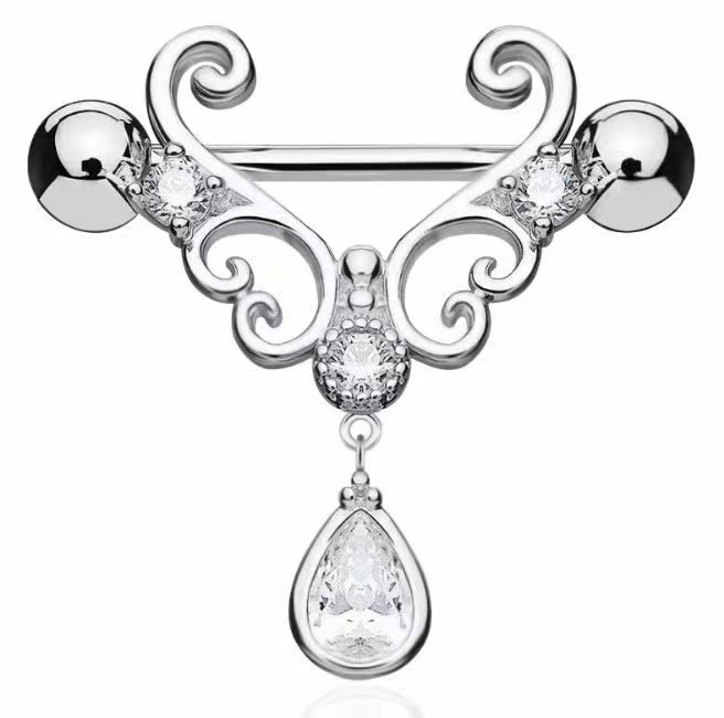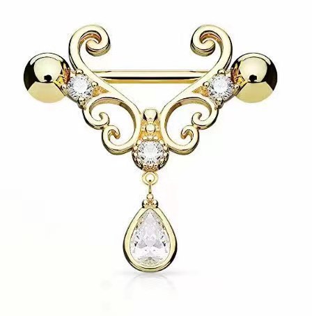 European and American Explosions Zircon Breast Ring Fashion Piercing Jewelry Nipple Nail Stainless Steel Nipple Ring Piercing Jewelry Chest Jewelry