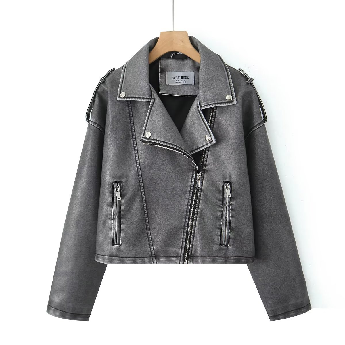 | nameOriginal | European and American fashion 2023 autumn distressed washed leather jacket pu leather versatile coat VV1-69803 |
