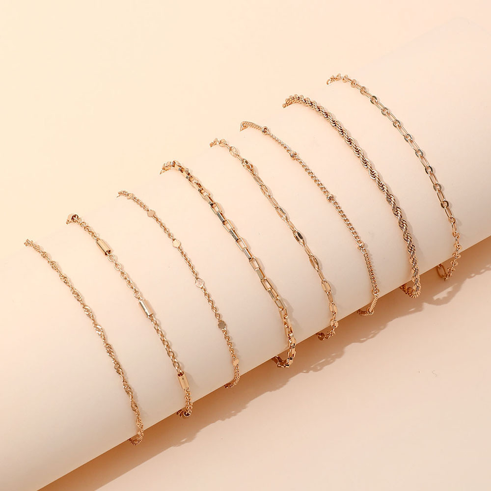European and American fashion box chain alloy chain foot decoration beach simple temperament multi-layer combination suit anklet