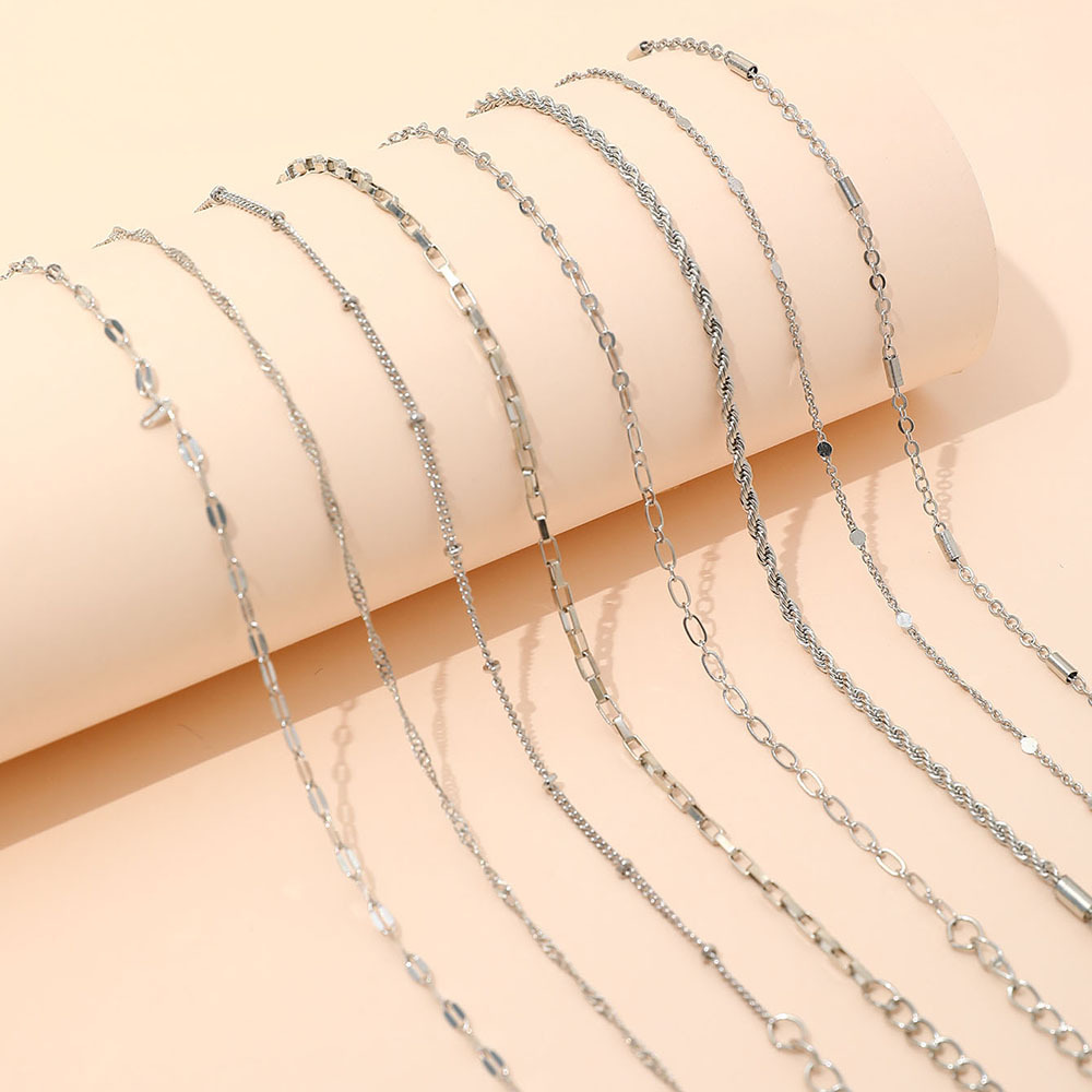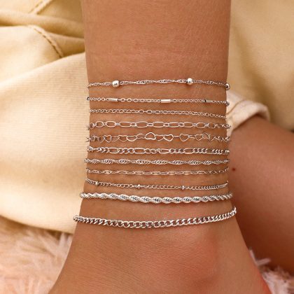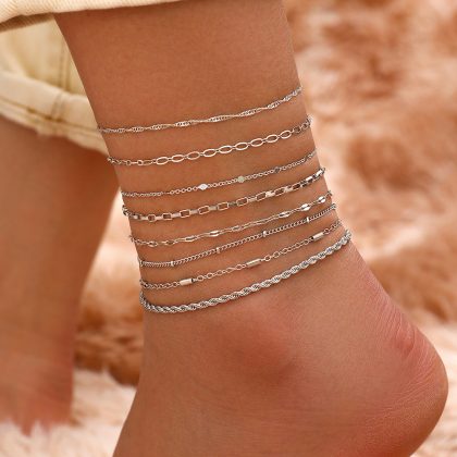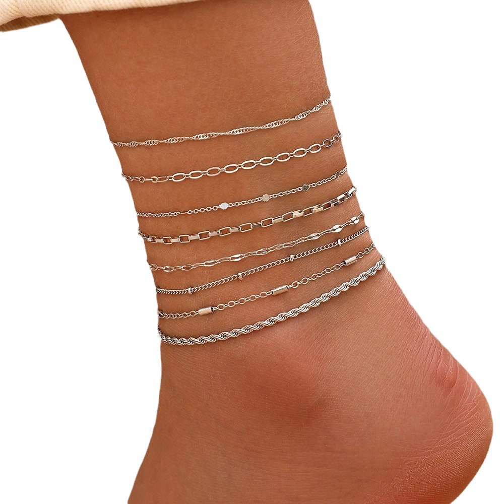 European and American fashion box chain alloy chain foot decoration beach simple temperament multi-layer combination suit anklet