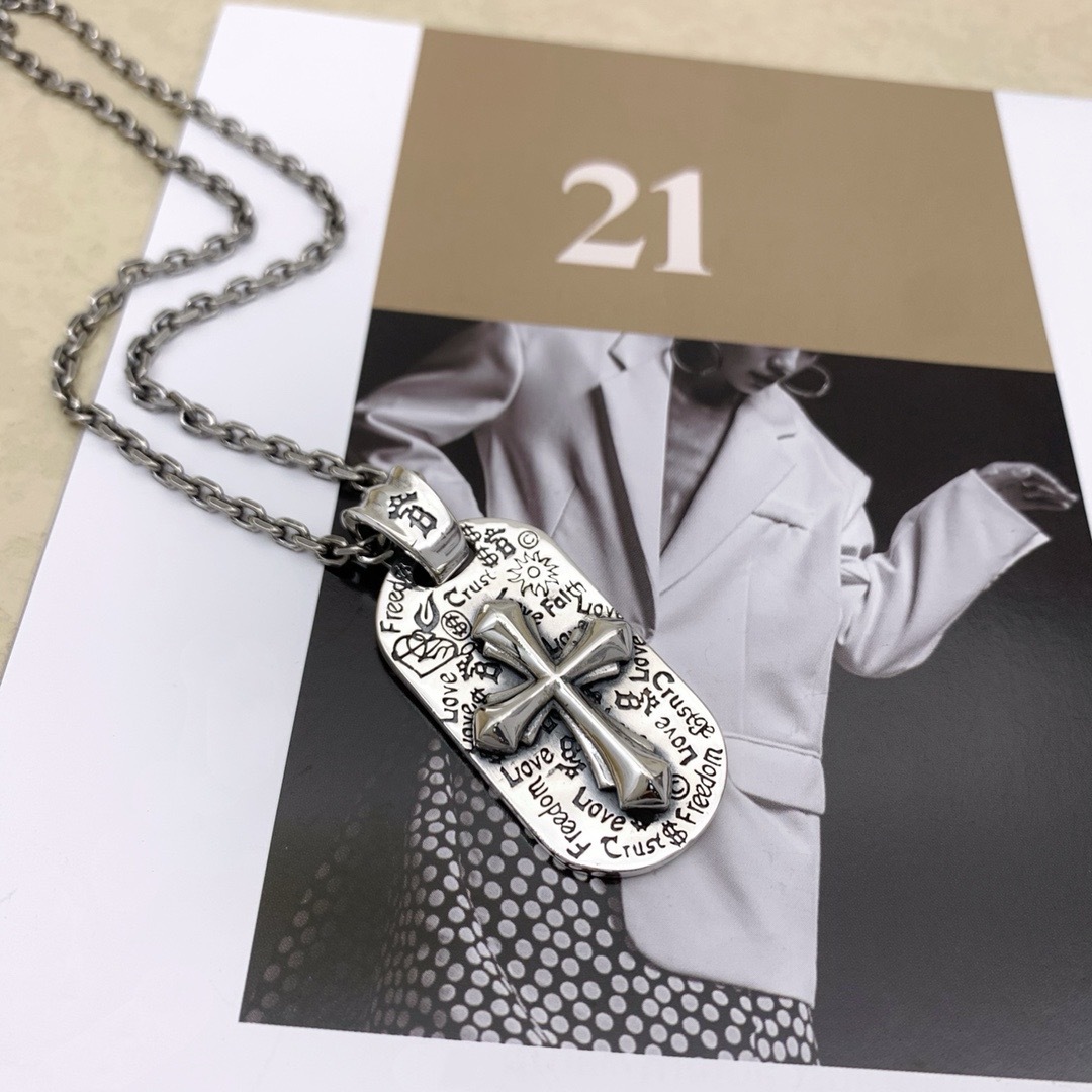 European and American fashion brand Thai silver necklace men's and women's cool jewelry fashion personality sterling silver graffiti cross pendant tag
