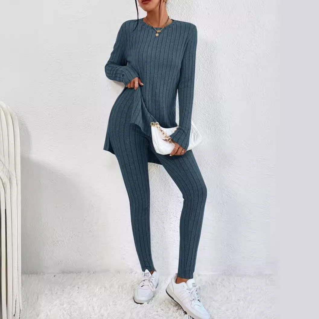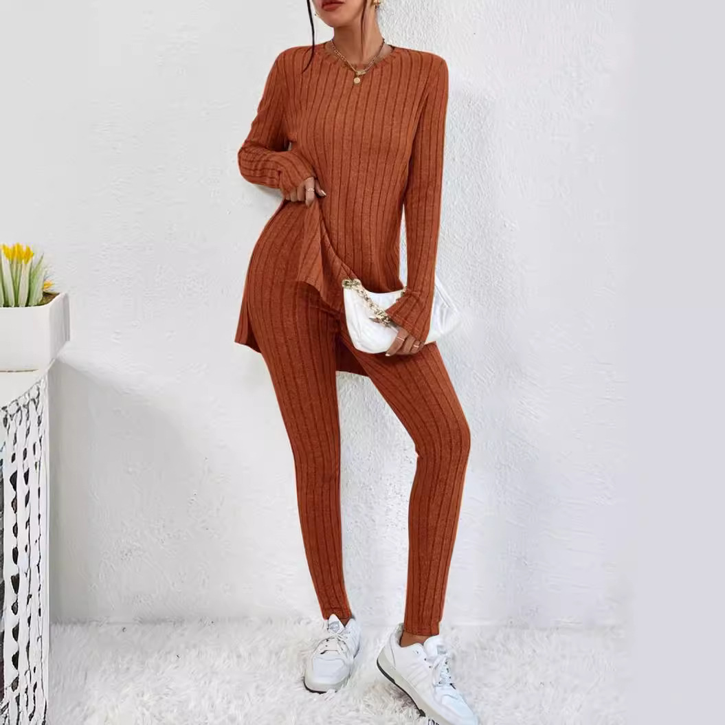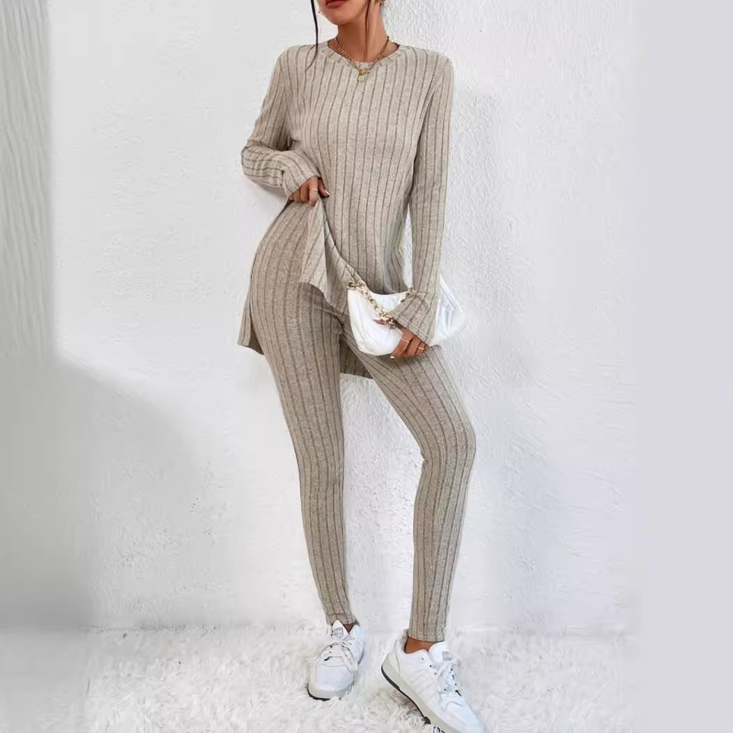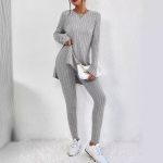 | nameOriginal | European and American fashion casual 2023 new long sleeve split irregular round neck shirt elastic high waist trousers suit |