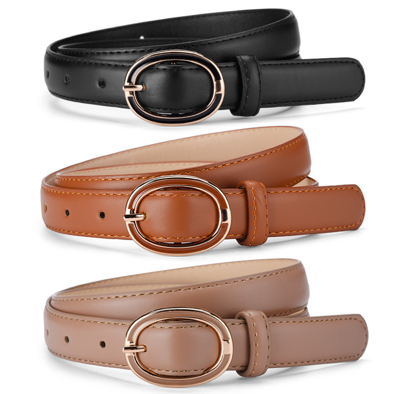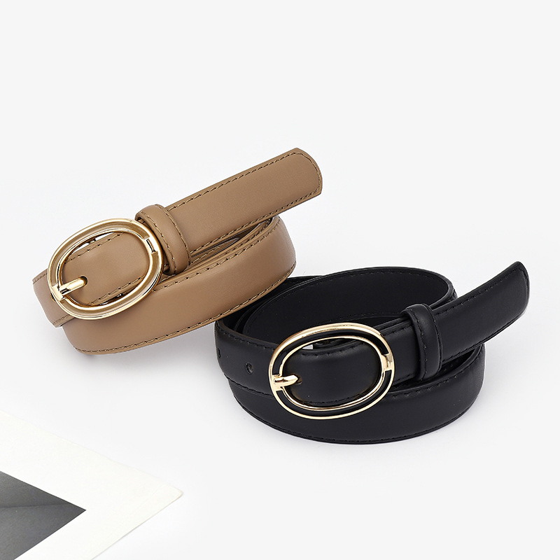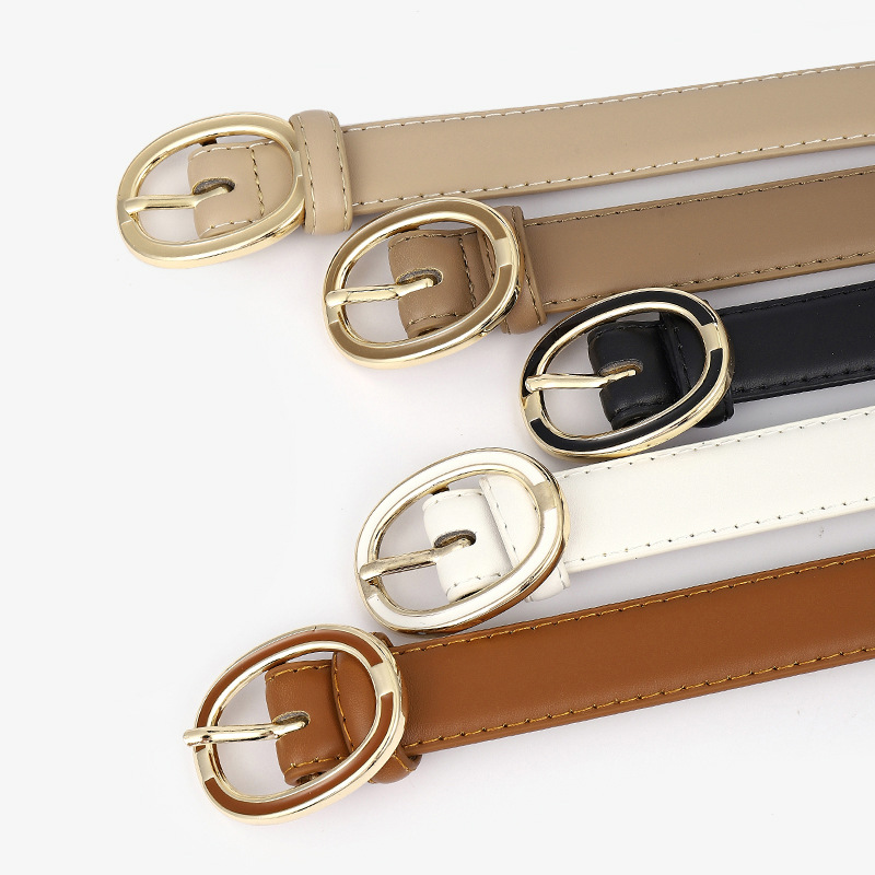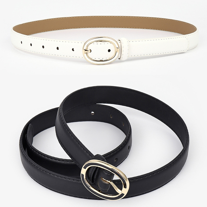 European and American Fashion chic Style Paint Buckle Decorative Women’s Belt Solid Color Oval Buckle Simple All-match Clothing Belt Women