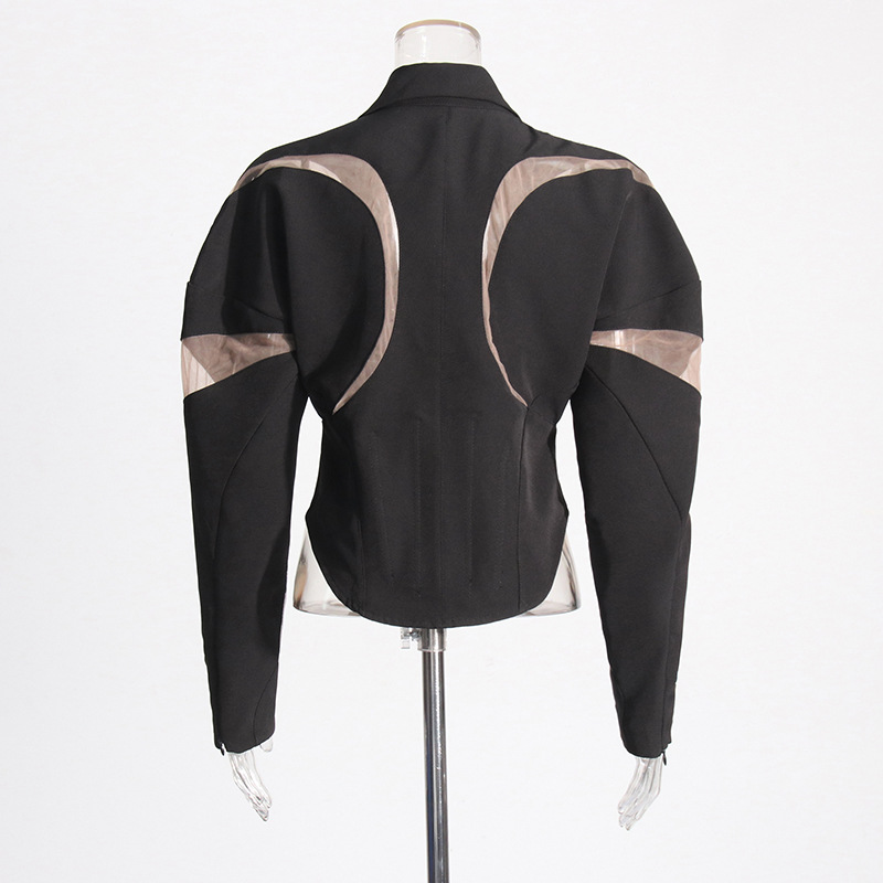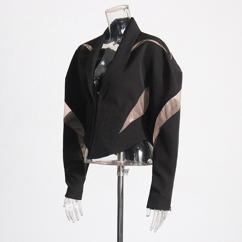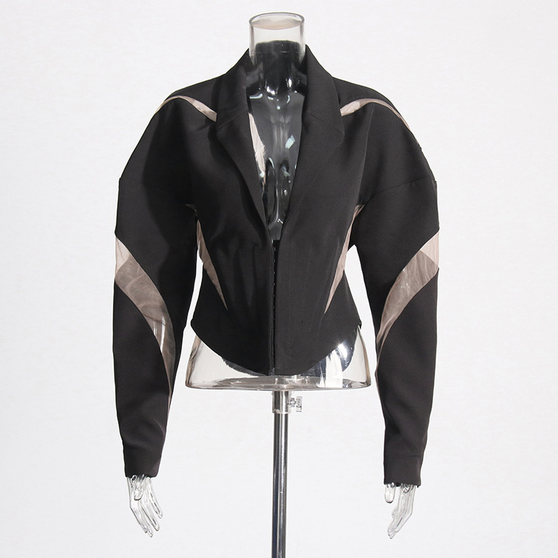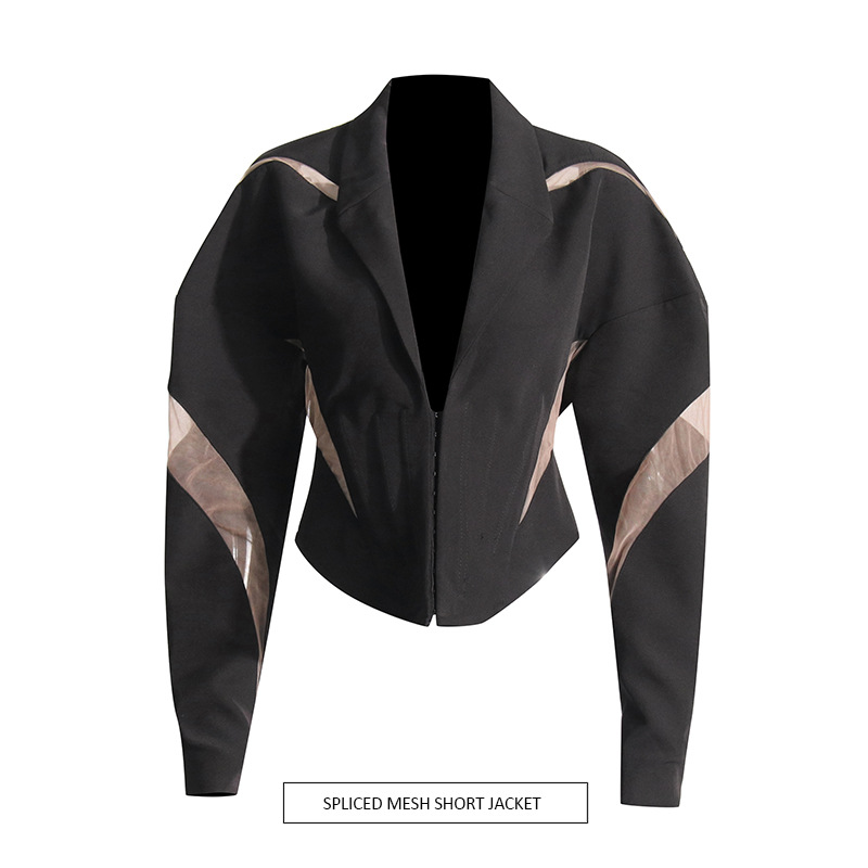 | nameOriginal | European and American fashion contrast color stitching design suit 2024 new zipper long sleeve curved hem profile short coat |
