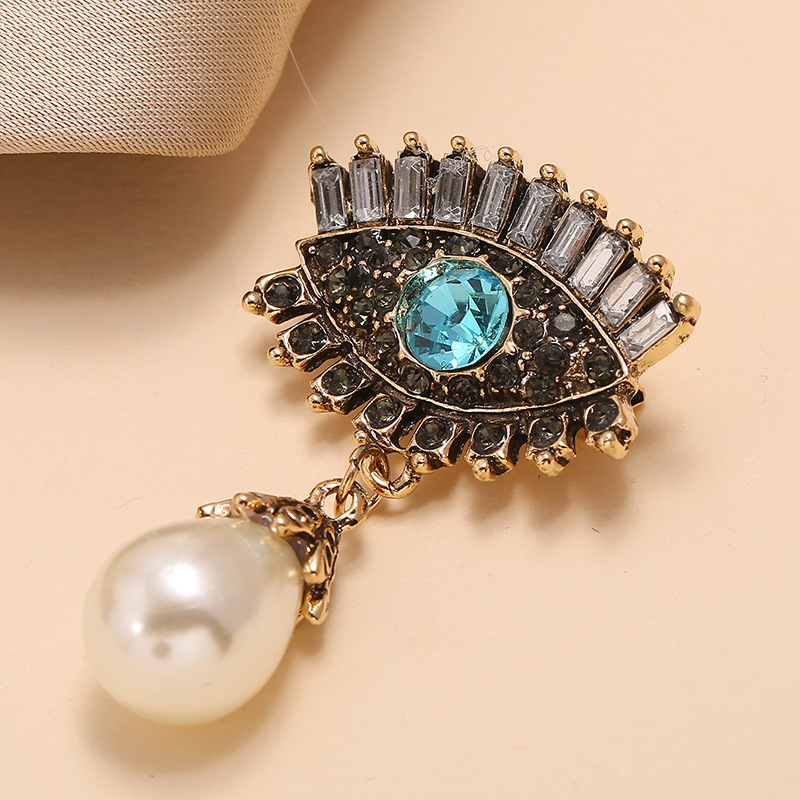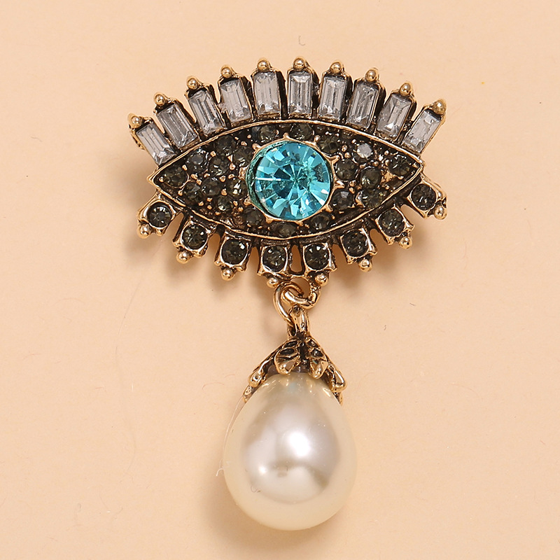 European and American fashion corsage jewelry popular eye personality retro Pearl diamond alloy Devil's Eye brooch accessories