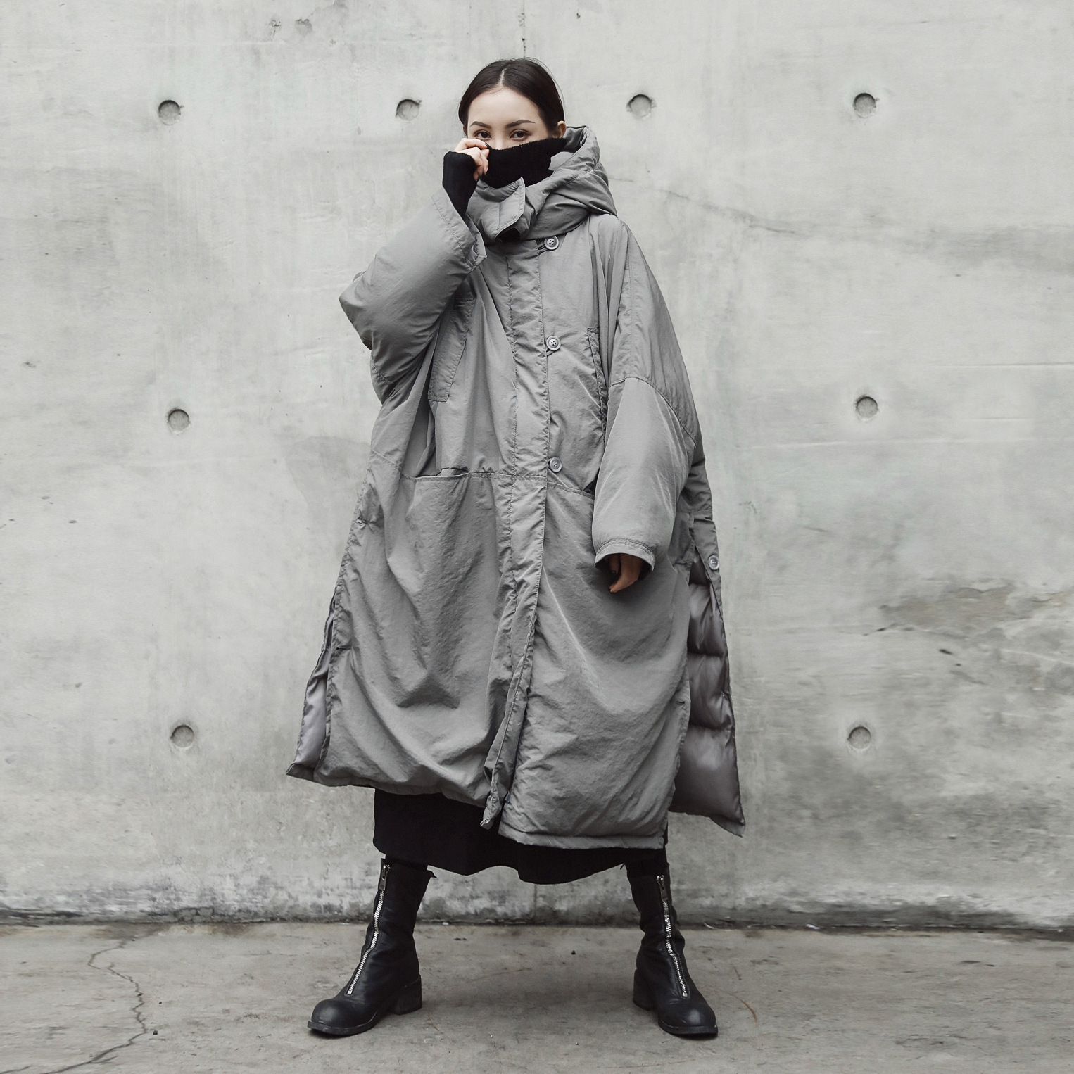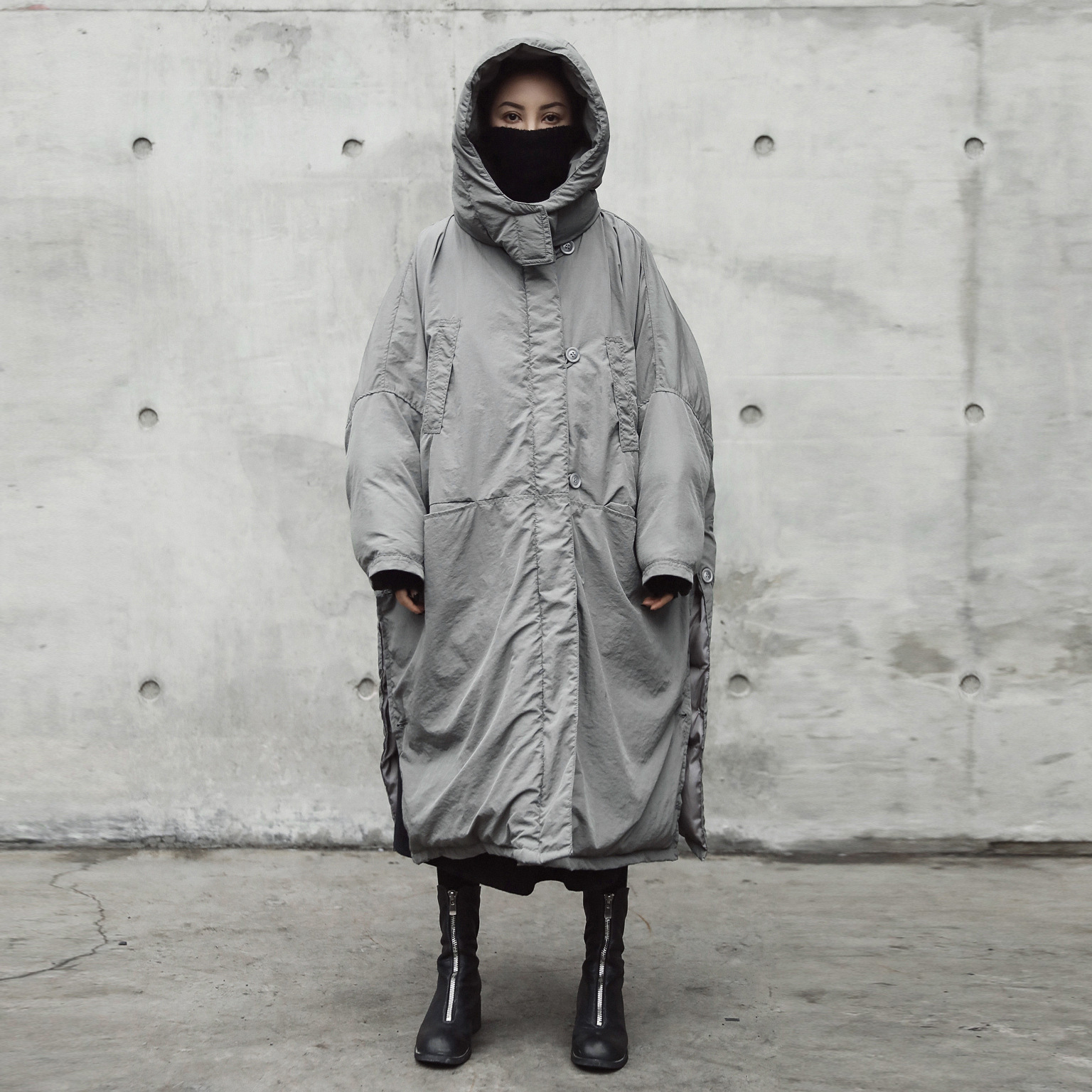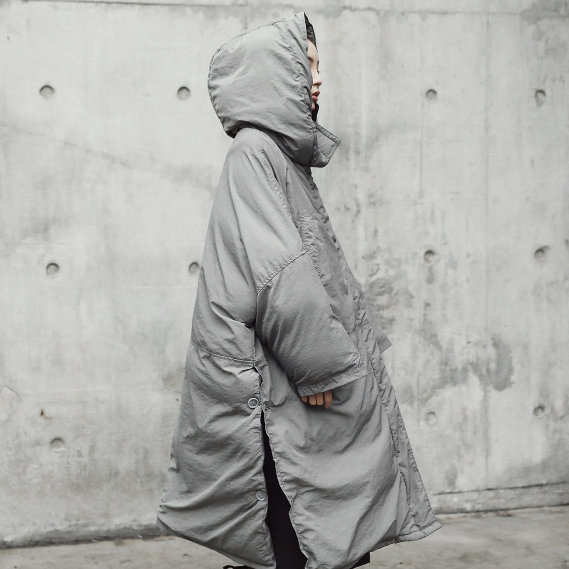 European and American fashion design thickened coat women’s winter New slit loose hooded large cotton-padded coat long cotton-padded coat fashion
