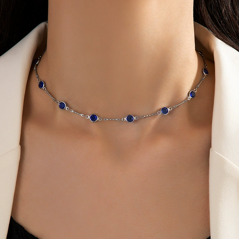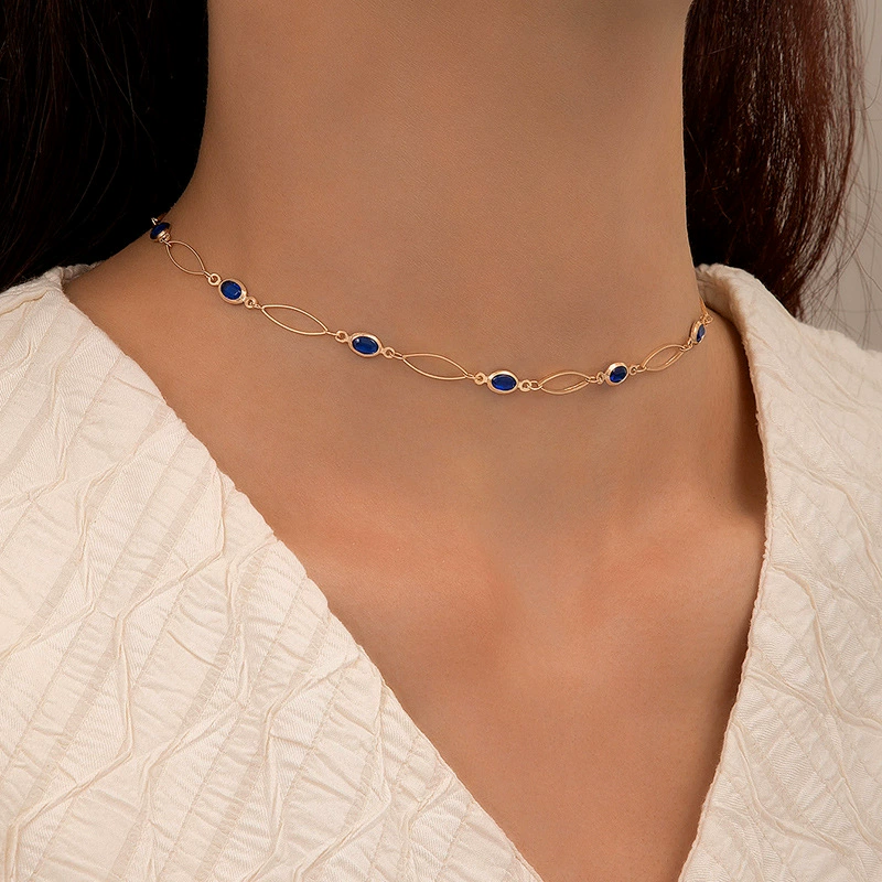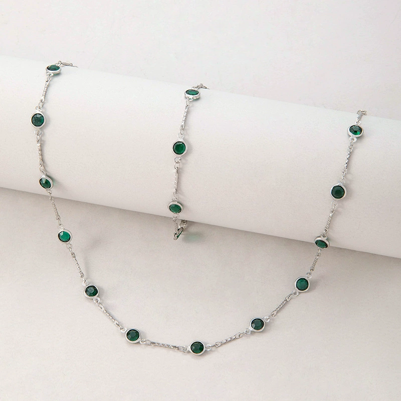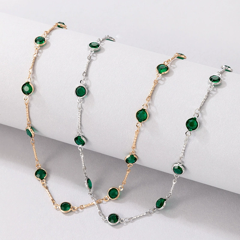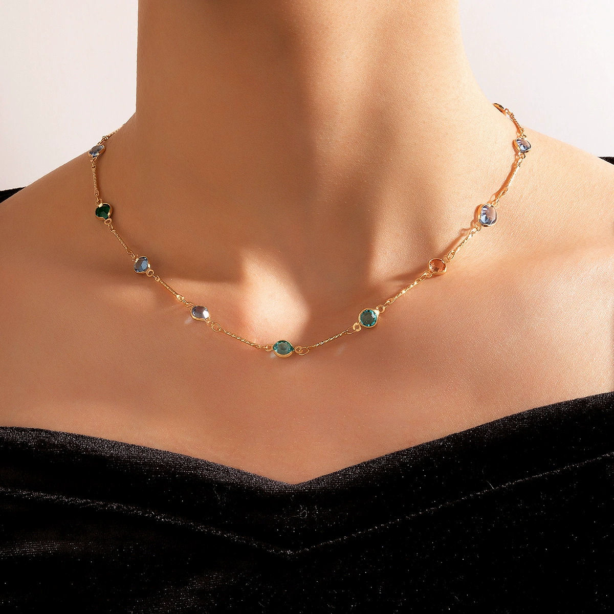 | nameOriginal | European and American fashion green rhinestone single layer necklace clavicle chain Water diamond clavicle chain  |